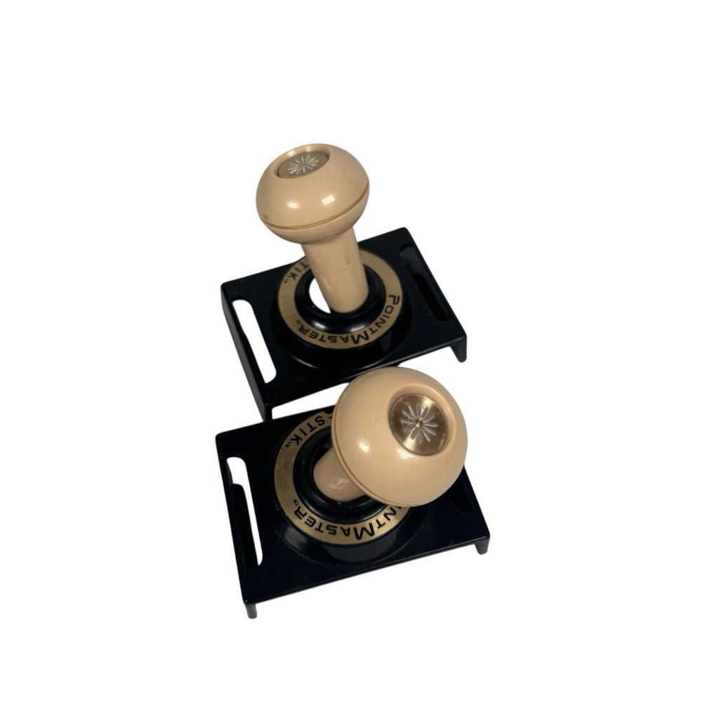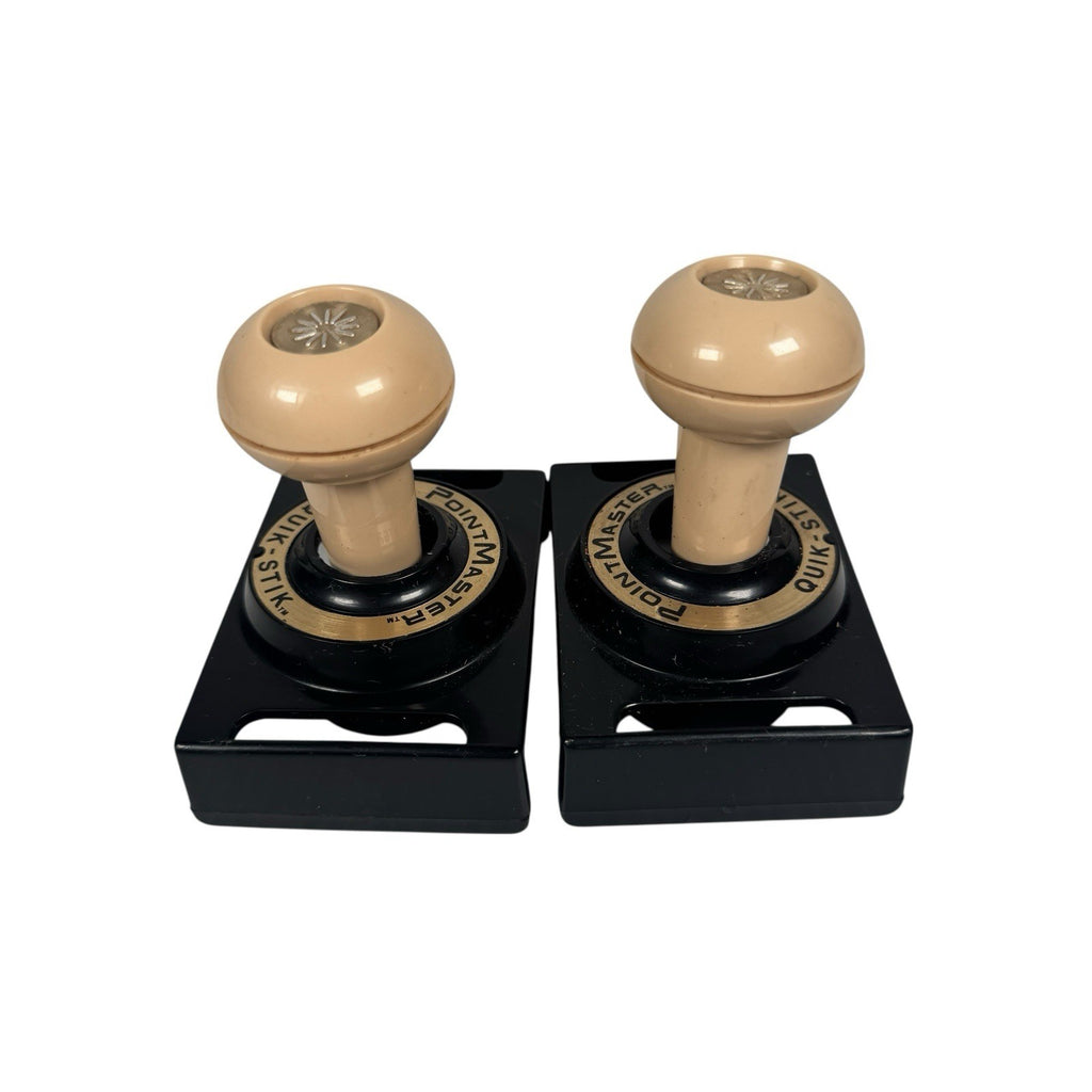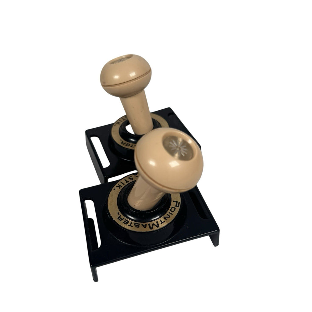 This is a set of 2 Intellivision Quik Stick joystick attachments. We have play tested them and they work well. The foam underneath does flake during use. See photos for condition details.