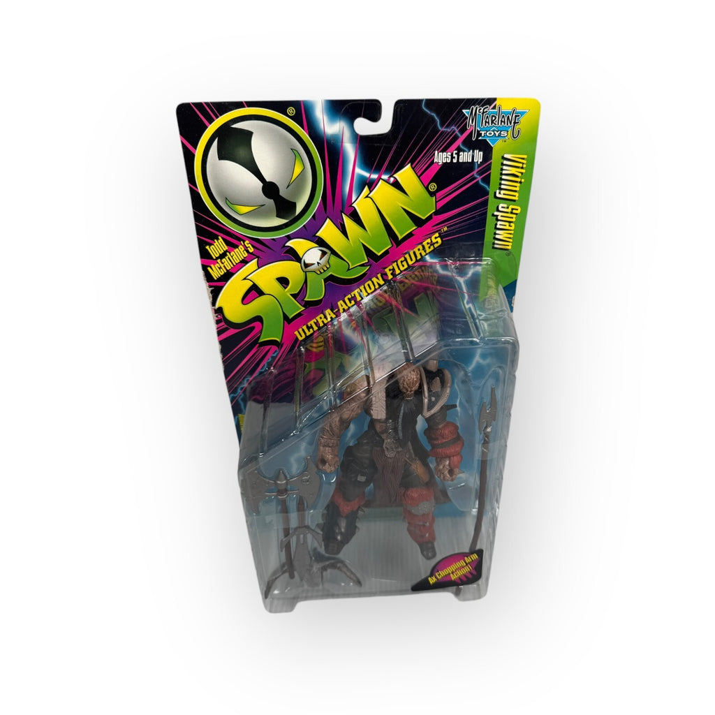 This 1996 Vintage McFarlane Toys Spawn Series 5 Viking Spawn is a rare find for collectors. The action figure is made of plastic and features the character Spawn, portrayed by Al Simmons in the TV show and movie. The figure is part of the Spawn franchise and is a must-have for fans of the series. The card is worn - see photos for condition details. This product is in New condition.