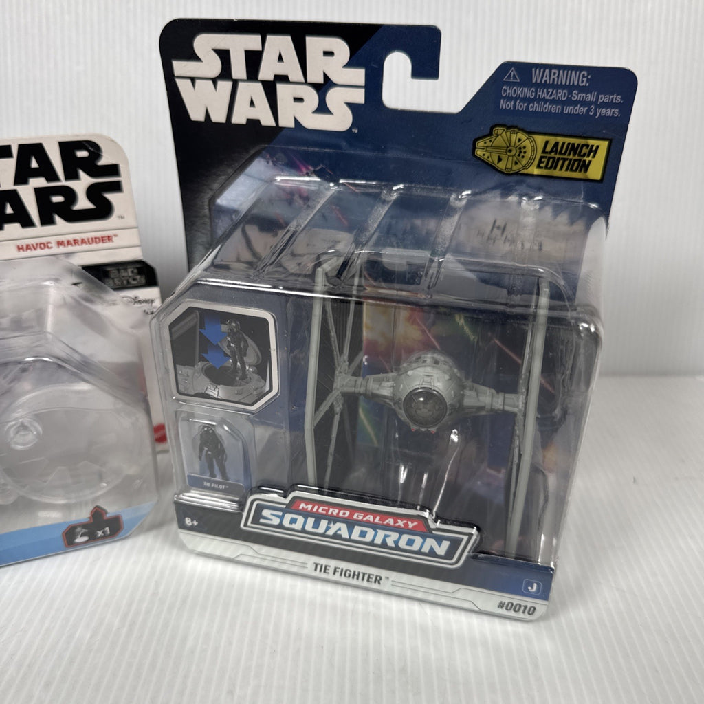 This is a set of two Star Wars mini vehicles - a Tie Fighter and a Hot Wheels Havoc Marauder. Perfect for Star Wars fans and collectors, these limited edition vehicles are great additions to any diecast and toy vehicles collection.