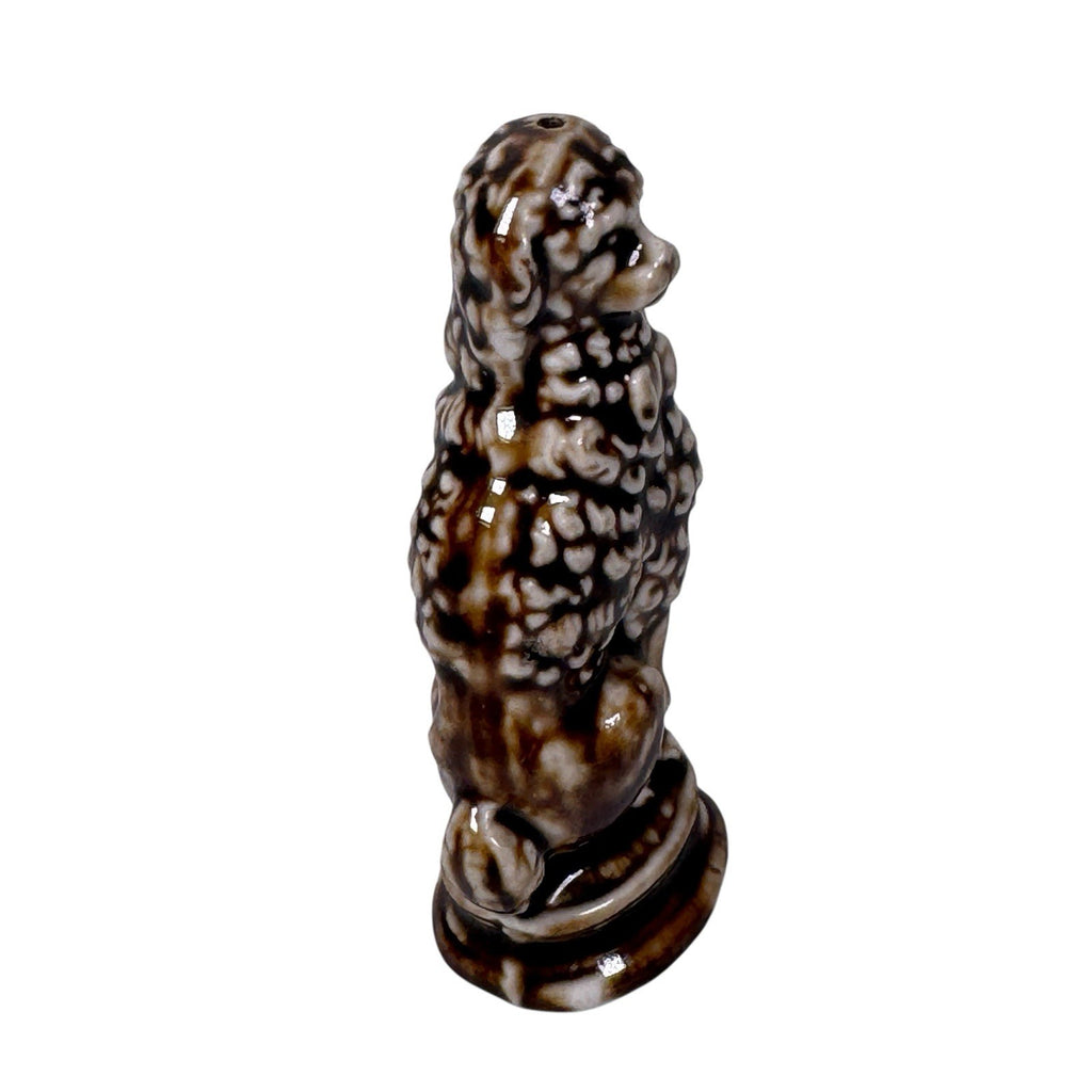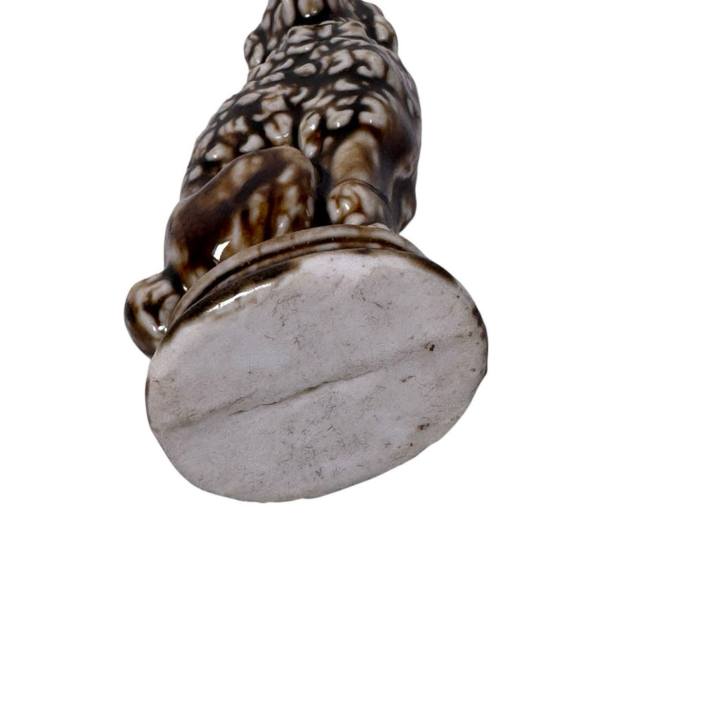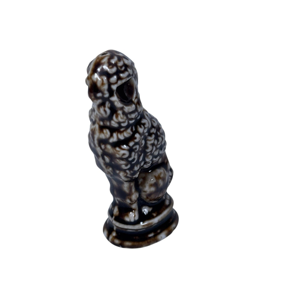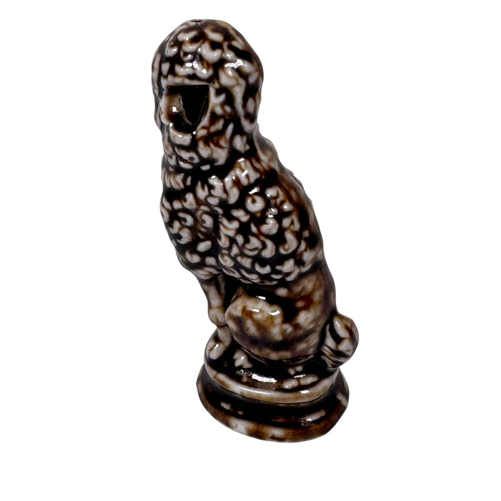 This antique Bennington Rockingham style ceramic poodle dog animal whistle from the 19th century is a unique and charming piece of stoneware. The vintage nature of this piece adds to its historical and decorative appeal, making it a standout piece for collectors of whistles and dog enthusiasts alike.