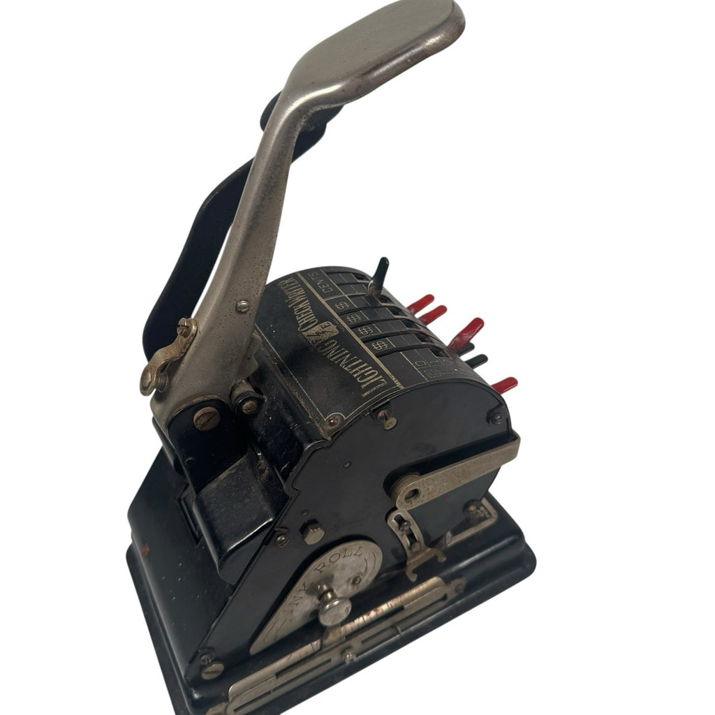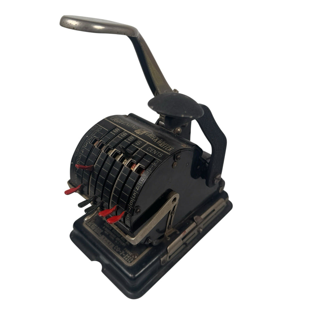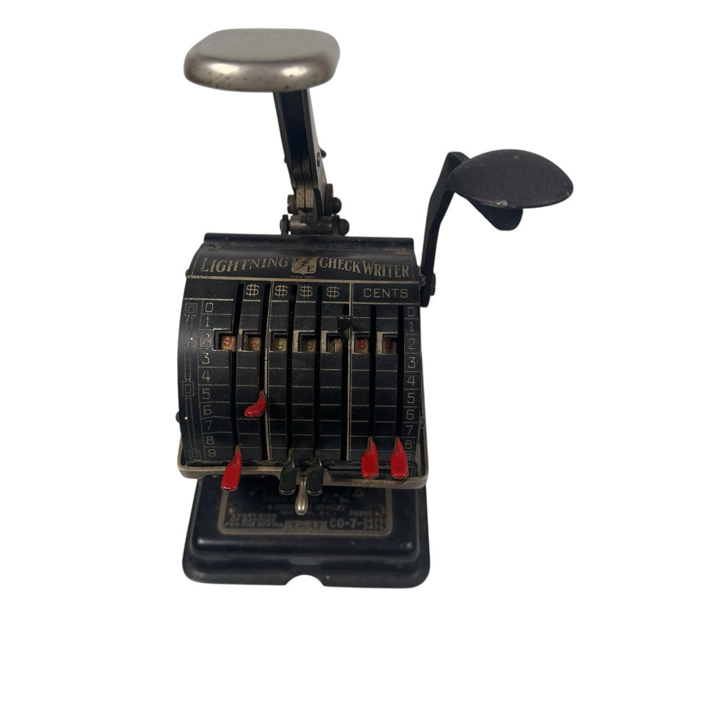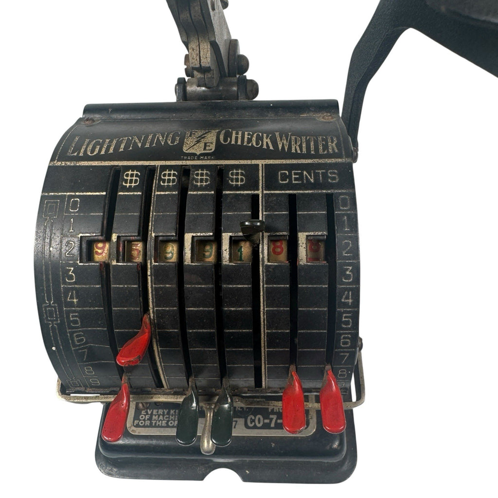 The Antique Protective Check Writer Co. Lightning Check Writer Machine CO-7 is a rare and valuable piece of history in the world of antiques. Made by the Protective Check Writer Co., this machine was designed to help with processing checks and financial transactions. Its unique design and functionality make it a desirable collectible for those interested in mercantile, trades, and factories from the past. This vintage piece offers a glimpse into the business practices of yesteryears and is sure to be a standout addition to any collection of cash registers and adding machines.