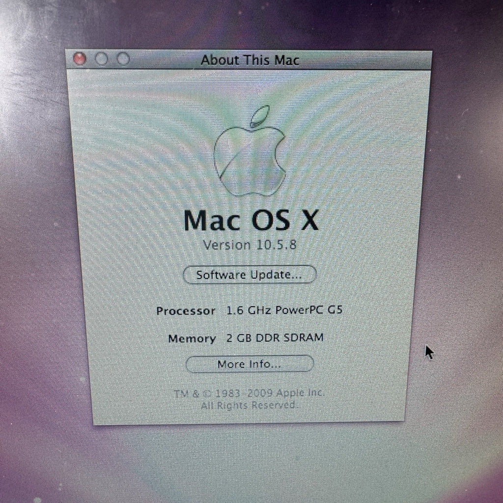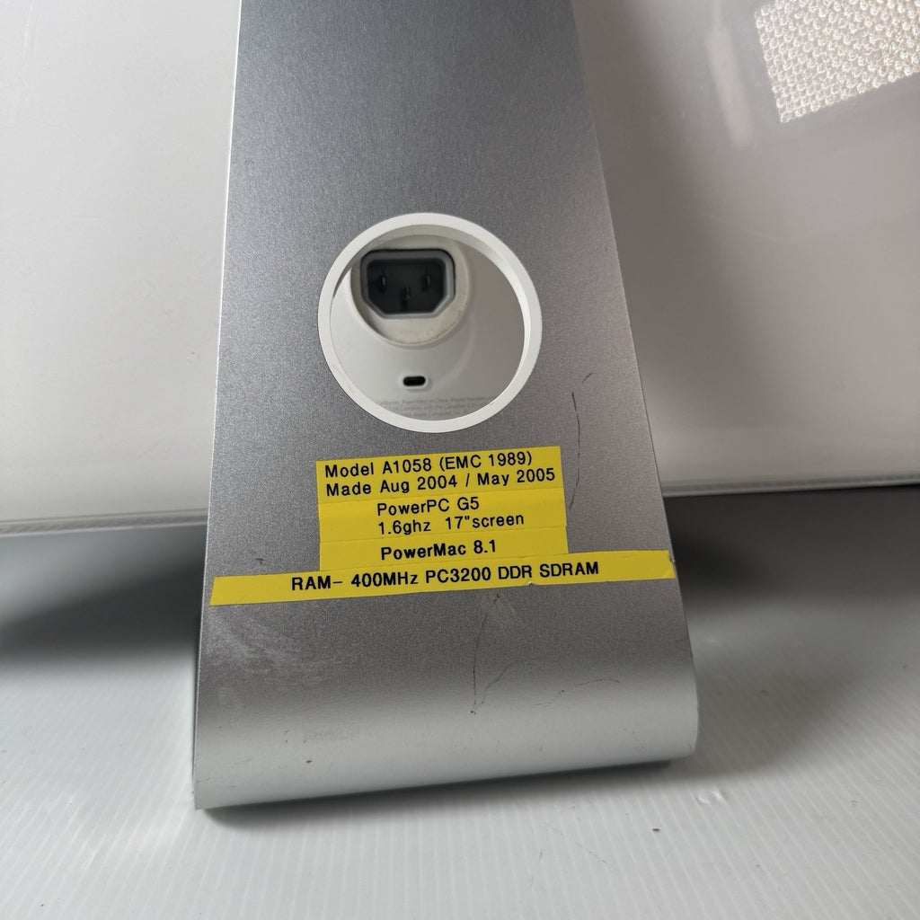 The Apple iMac A1058 17" Desktop from August 2004 is a vintage computer perfect for casual computing. With a PowerPC G5 processor running at 1.80 GHz, 2GB DDR SDRAM RAM, and a 74GB hard drive capacity, this white iMac is a reliable option for basic tasks. It features USB 2.0 connectivity, making it easy to connect with various devices. With Mac OS X 10.5 Leopard operating system, this Apple desktop offers a nostalgic experience for users who appreciate older technology.