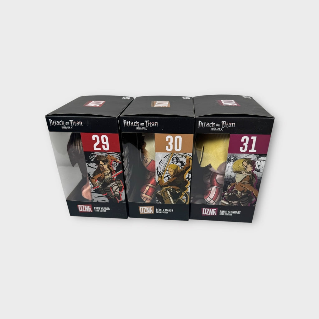Enter the grim world of Attack on Titan with these detailed DZNR plush figures. A haunting reminder of humanity's fight for survival, these collectibles embody the Titans' eerie allure.