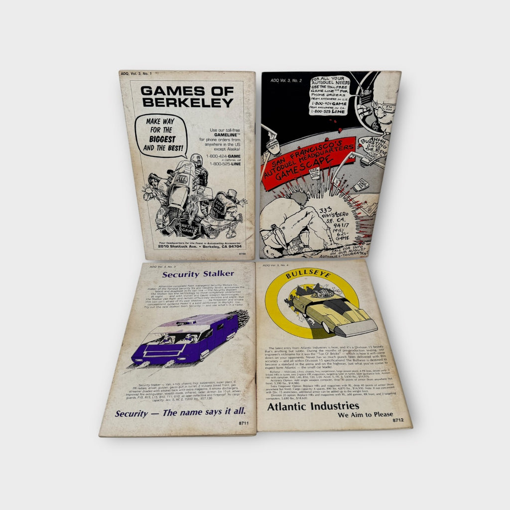 Dive into the post-apocalyptic realm of Car Wars with the complete set of Autoduel Quarterly, Volume 3, issues #1-4. Published by Steve Jackson Games in 1985, these sourcebooks are essential for fans and collectors alike, offering a deep dive into the chaotic world of vehicular combat and survival. Whether you’re a seasoned gamer or new to the genre, these books will serve as a valuable resource for your gaming table, igniting imagination and fostering endless hours of play.This product is in Used condition.