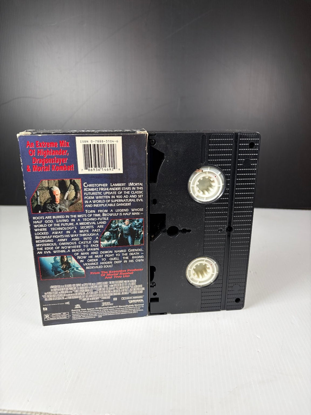 This standard VHS release captures the film's gritty atmosphere and intense action, making it a valuable addition for collectors of 90s sci-fi and fantasy cinema. Follow Beowulf as he battles the monstrous Grendel and navigates a treacherous fortress on the edge of darkness, where the line between man and monster blurs. Experience this unique take on a legendary hero's journey, brought to life by a notable cast and the executive producers behind the iconic 'Mortal Kombat' franchise.This product is in Very Good condition.