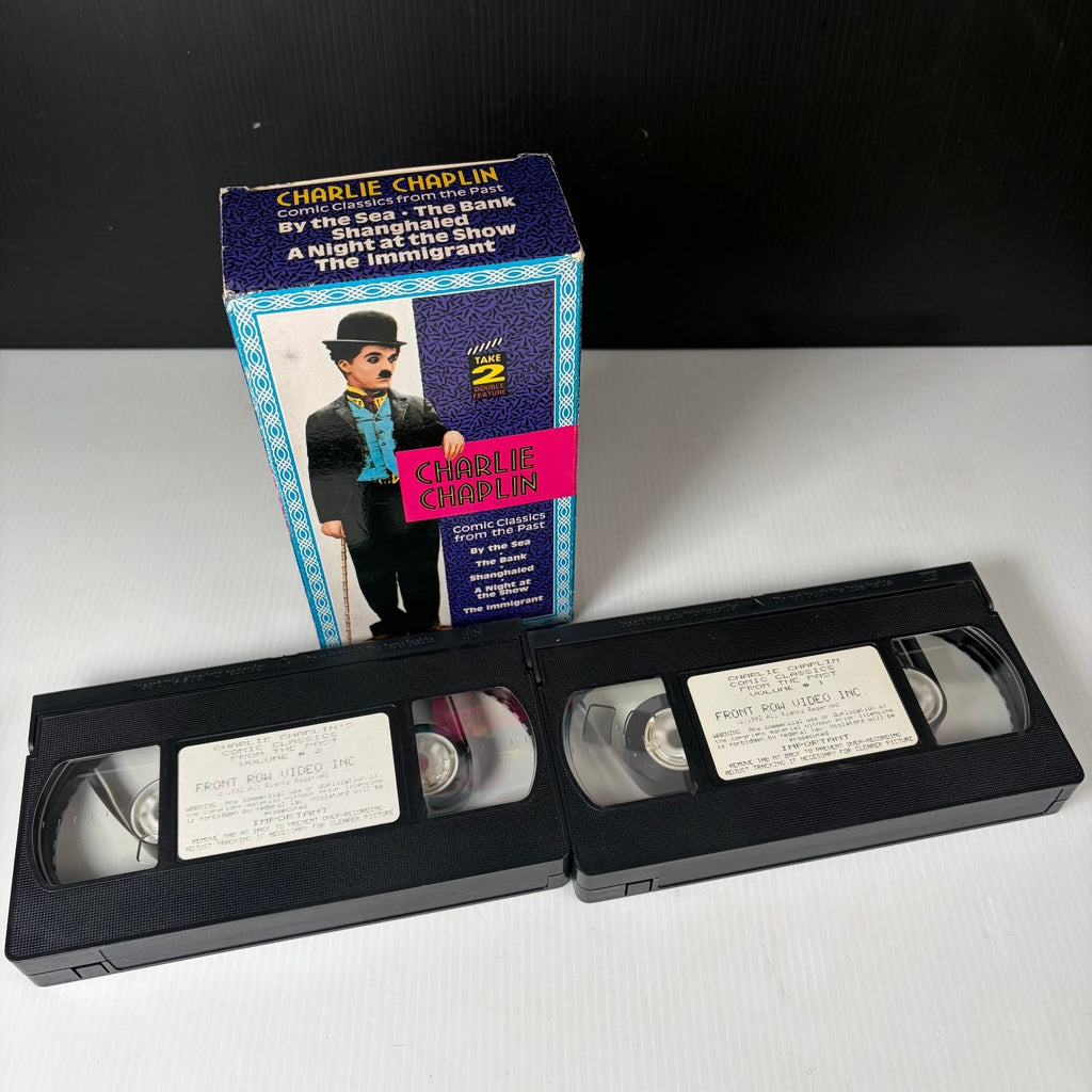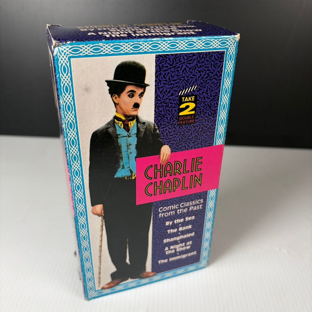 This Charlie Chaplin VHS set from 1992 features a collection of timeless silent comedy classics. Presented as a double feature, this vintage release includes iconic shorts such as By the Sea, The Bank, Shanghaied, A Night at the Show, and The Immigrant. Starring Charlie Chaplin himself alongside Edna Purviance, these films showcase Chaplin's unique talent as a versatile performer, writer, director, and composer.