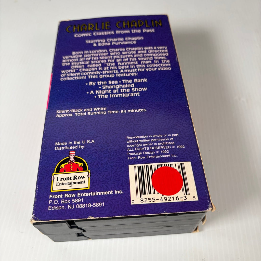 Distributed by Front Row Entertainment Inc., this VHS set is a must-have for collectors and silent film enthusiasts. The tapes are in NTSC format and the total running time is approximately 84 minutes. The packaging features a colorful design with a classic image of Chaplin as the Tramp, making this an attractive collectible. This edition preserves the spirit of Chaplin's work with a focus on his funniest silent shorts, perfect for adding to any vintage movie collection.
