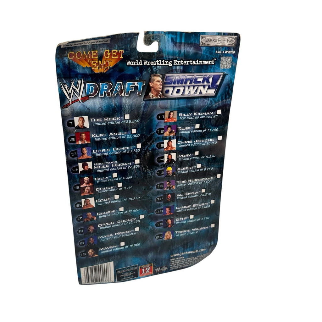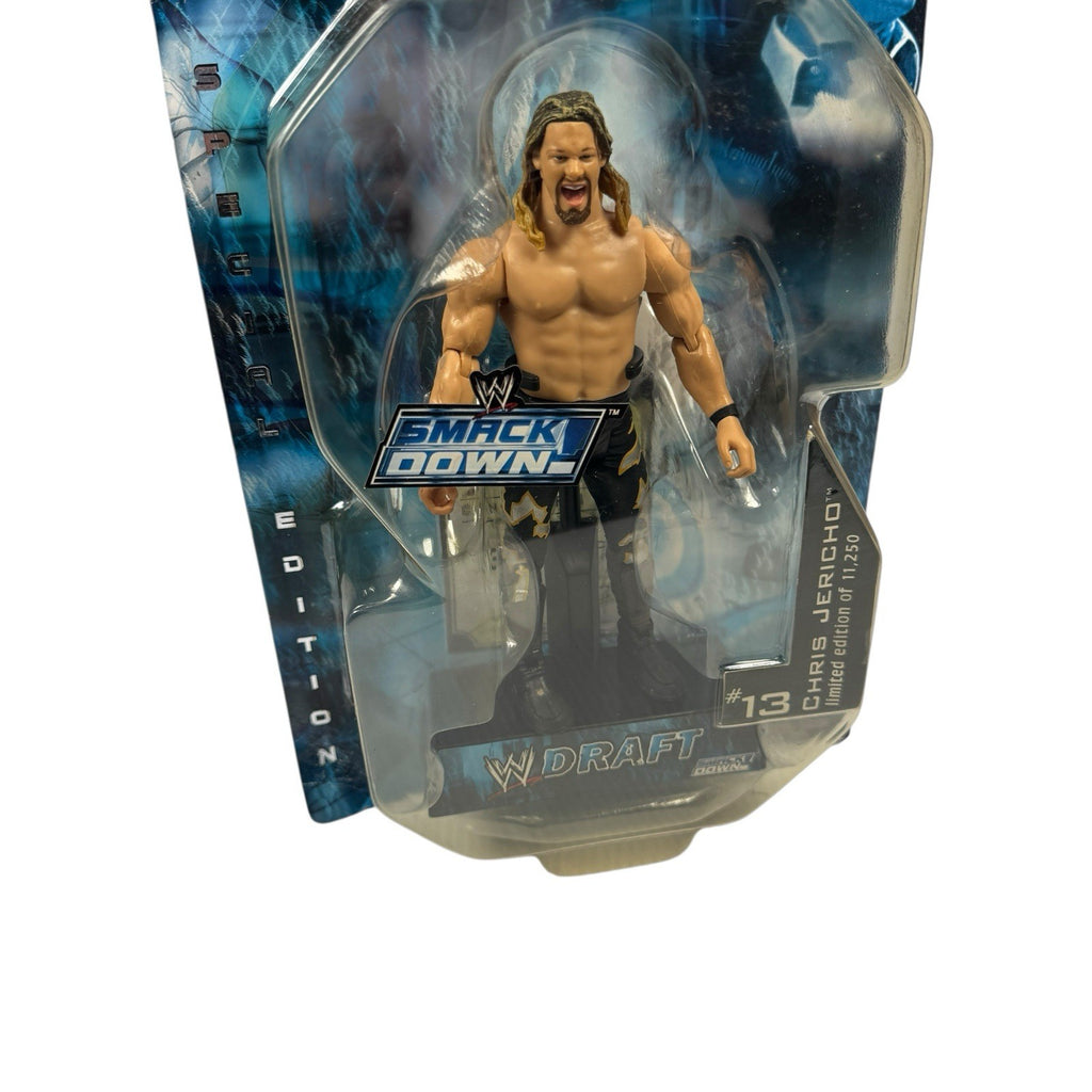 For sale is a brand new Chris Jericho WWE Jakks Pacific action figure, part of the Smackdown #13 series. This highly collectible item was manufactured in 2002 and features the legendary wrestler in his iconic attire from his time in WWE. The figure is perfect for fans of wrestling and action figures alike, and is a must-have for any serious collector.