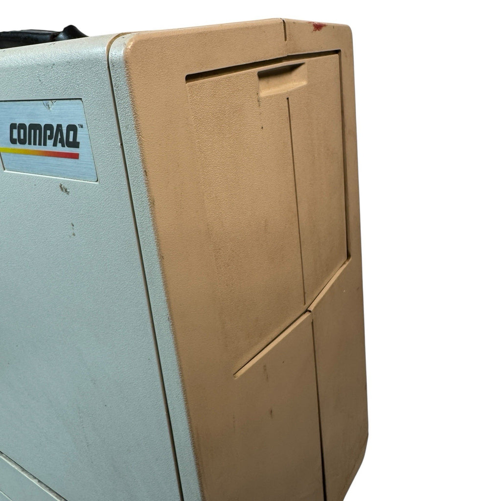 This listing is for a Compaq Portable (Model 1, released 1983), the very first computer released by Compaq and a landmark in IBM PC-compatible history. The Compaq Portable was one of the earliest “luggable” PCs, featuring a built-in green CRT display, suitcase-style chassis, and detachable keyboard.