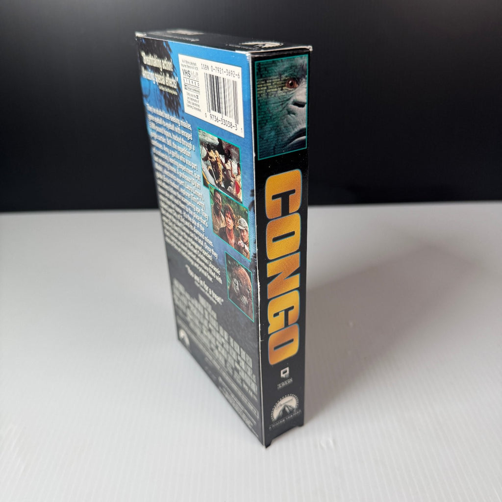 Starring Dylan Walsh, Laura Linney, Ernie Hudson, and Tim Curry, Congo offers breathtaking action and amazing special effects. This original VHS release comes in a standard clamshell case with eye-catching cover art featuring a close-up of the gorilla's face. The tape is formatted for NTSC signal standard and includes Hi-Fi stereo playback with Dolby Surround sound, ensuring a high-quality viewing experience. A must-have for collectors and fans of adventure and sci-fi cinema alike, this VHS tape captures the intensity and excitement of the mid-90s blockbuster.