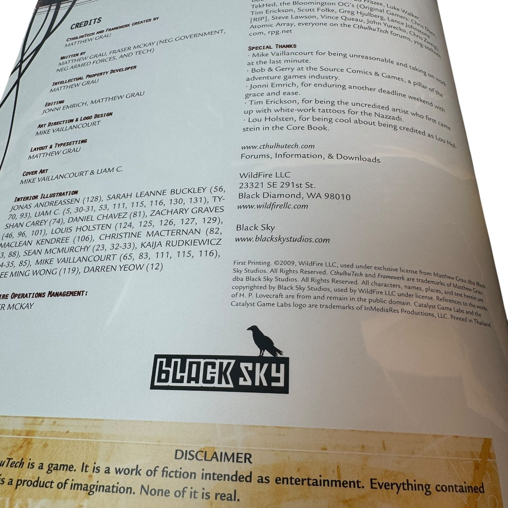 Dive into the dark futuristic horror world of Cthulhu Tech with the Mortal Remains core rulebook. Published in 2009 by Catalyst Game Labs and developed by WildFire LLC and Black Sky Studios, this book explores a unique blend of cyberpunk, mecha, and Lovecraftian horror. It serves as an expansion to the Cthulhu Tech storytelling game, requiring the core book for full gameplay.