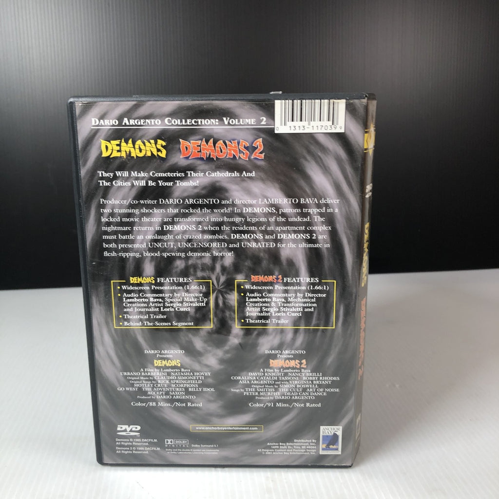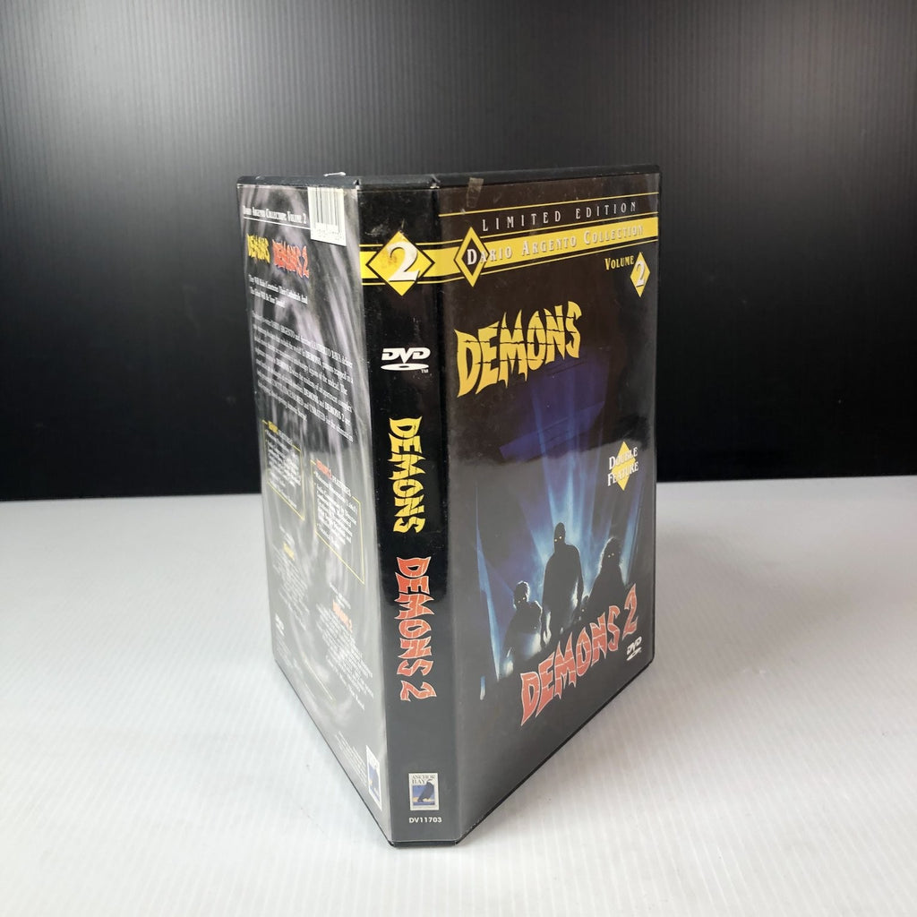 Experience the terrifying double feature of Demons and Demons 2, part of the Limited Edition Dario Argento Collection Volume 2. This DVD set includes both cult classic horror films produced by Dario Argento and directed by Lamberto Bava. Demons (1985) traps patrons in a movie theater as they transform into ravenous undead creatures, while Demons 2 (1986) unleashes a zombie outbreak in an apartment complex. Both films are presented in widescreen (1.66:1) format, uncensored, uncut, and unrated for the ultimate horror experience.