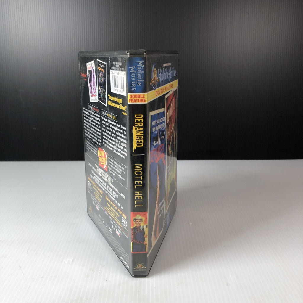 This DVD double feature from MGM's Midnite Movies series includes two cult horror classics: "Deranged" (1974) and "Motel Hell" (1980). "Deranged" is a chilling true crime-inspired psychological horror about a rural necrophiliac and murderer, praised for its solid storytelling and intense atmosphere. "Motel Hell" offers a darkly comedic twist on horror, featuring Farmer Vincent and his sinister smoked meat operation, blending suspense and dark humor.