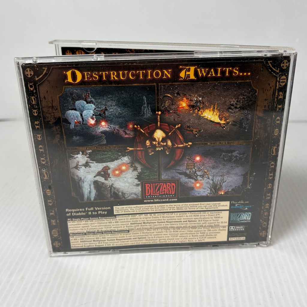 Lord of Destruction introduces a wealth of new content and gameplay enhancements designed to enrich your Diablo II experience. Command two new character classes: the agile Assassin, a master of traps and martial arts, and the shapeshifting Druid, who wields nature's fury and transforms into fearsome beasts. Discover thousands of new items, including unique weapons, armor, runes, and jewels, allowing for unprecedented character customization. The expansion also features an expanded stash for more loot, higher resolution graphics, and enhanced multiplayer options via Battle.net and LAN, ensuring countless hours of demon-slaying adventure on your PC. Remember, this expansion requires the full version of Diablo II to play.This product is in Very Good condition.