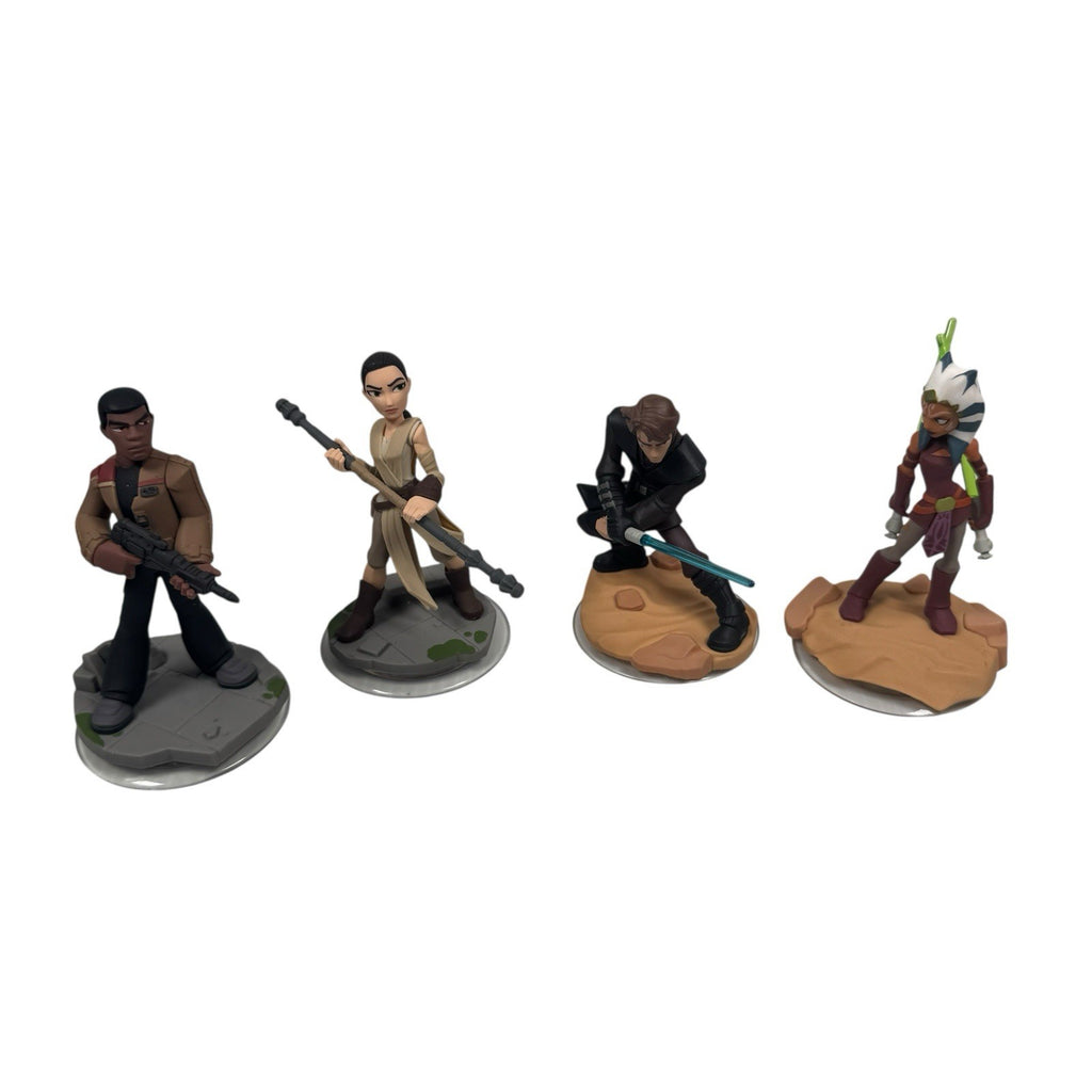 The product is a Disney Infinity 3.0 character figure pack featuring characters from the Star Wars franchise, including Ahsoka, Finn, Rey, and Anakin. These character figures are designed for use with the Disney Infinity video game series, allowing players to bring these beloved characters into the virtual world and interact with them in the game. This lot of Star Wars characters is a must-have for any Disney Infinity fan looking to enhance their gaming experience with iconic characters from the Star Wars universe.