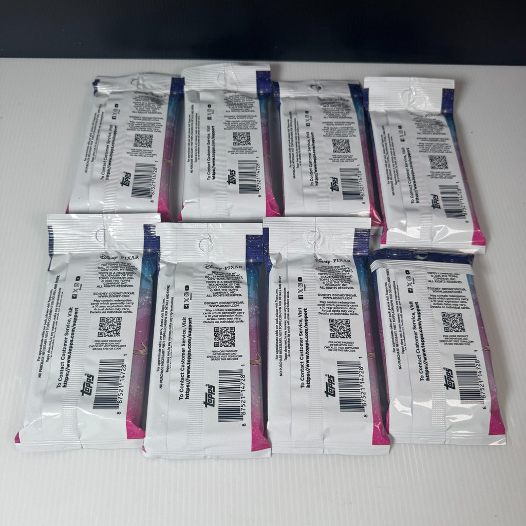 The Disney Topps Wonder 2025 Fat Pack includes 25 cards featuring characters from Disney movies such as Ariel, Sleeping Beauty, Cinderella, and Tiana. Each pack is sealed, ensuring the cards are brand new. These trading cards are made of card stock and are suitable for ages 4 and up. With a mix of beloved Disney characters and a focus on the franchise, these non-sport trading cards are a must-have for any Disney fan looking to add to their collection.This product is in New/Factory Sealed condition.