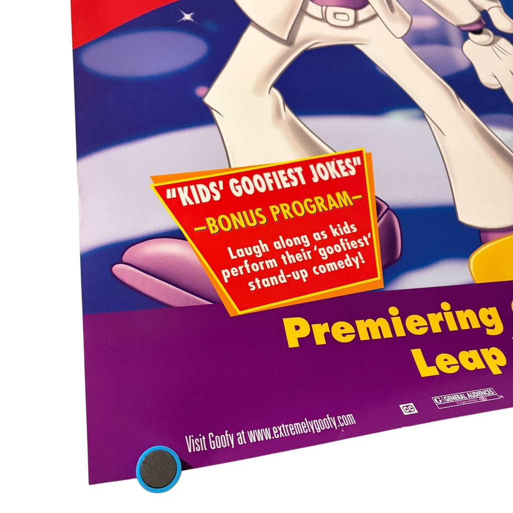 This is an original United States one-sheet movie poster for Disney's An Extremely Goofy Movie, released in 2000. The poster features vibrant, colorful artwork depicting Goofy and his son Max in animated form, with Max on a skateboard. The design is playful and captures the fun spirit of the film, highlighting the characters' dynamic poses and expressions. The artwork prominently includes the title "An Extremely Goofy Movie" with the Disney logo above it.