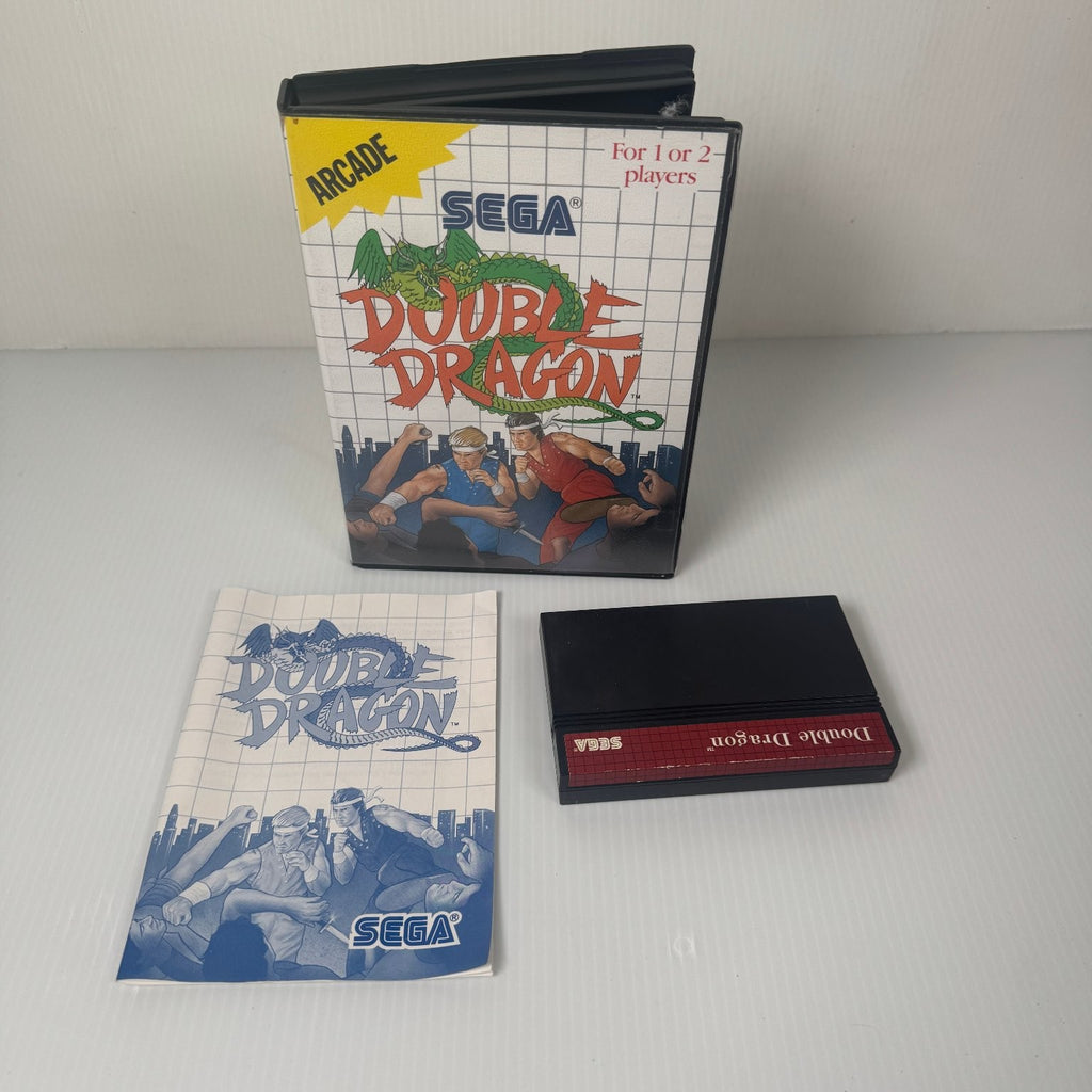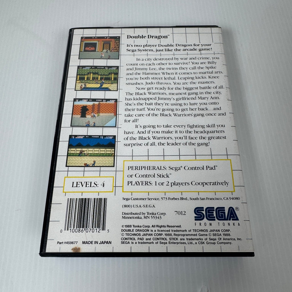 Double Dragon for the Sega Master System is a classic two-player arcade-style beat 'em up that brings the intense action of the arcade to your home console. Play as Billy and Jimmy Lee, the martial arts masters known as the Spike and the Hammer, as you fight through a city overrun by the ruthless Black Warriors gang. With moves like leaping kicks, knee smashes, and judo throws, this game delivers engaging combat and cooperative gameplay.