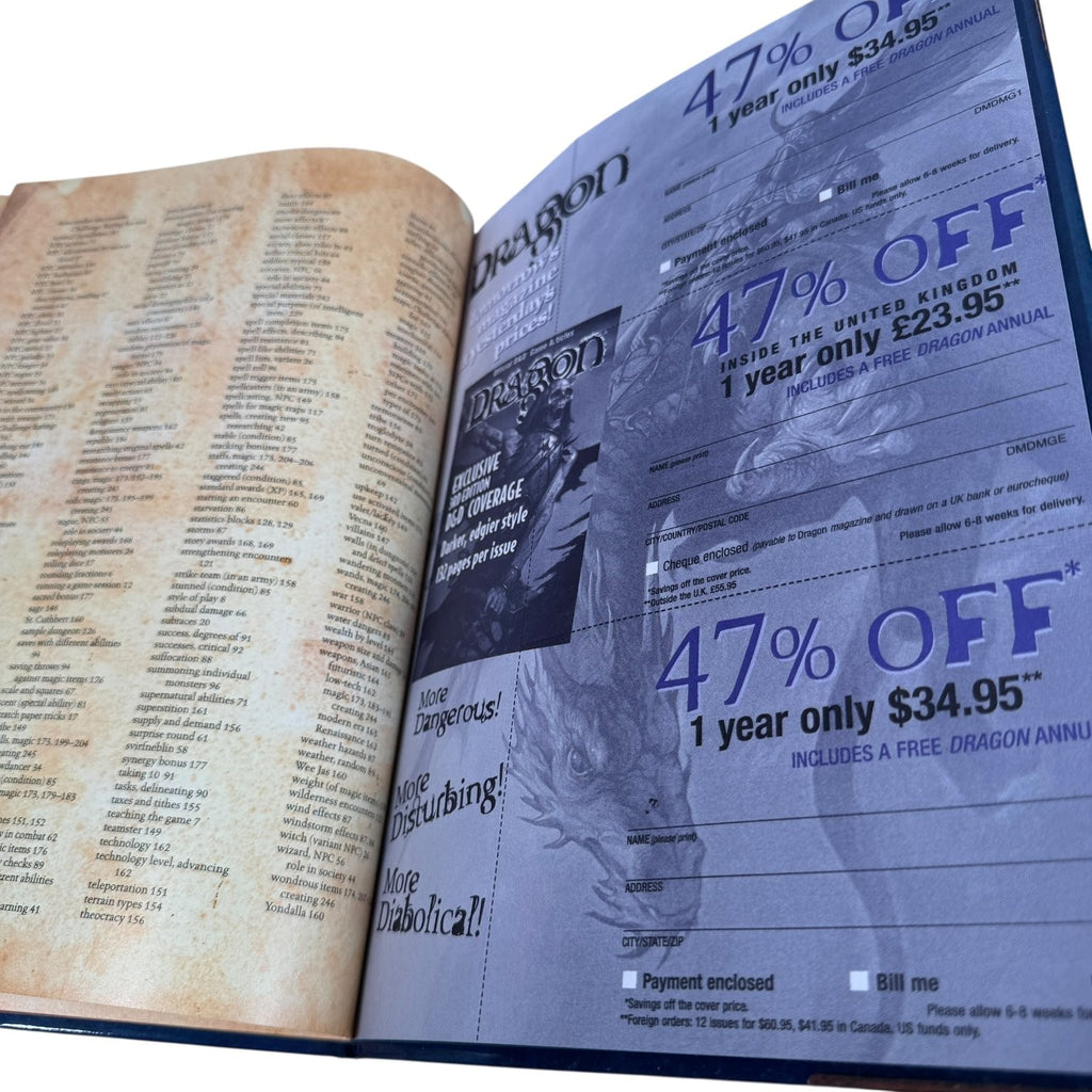 This first printing edition is a vintage treasure, featuring detailed content and classic artwork that have made it a sought-after item among tabletop role-playing gamers. Whether you're a seasoned Dungeon Master or new to the game, this guide offers comprehensive rules and inspiration to enrich your Dungeons & Dragons experience. Published in the USA with ISBN 0-7869-1551-X, it stands as a testament to the enduring legacy of D&D's third edition era.This product is in Good condition.