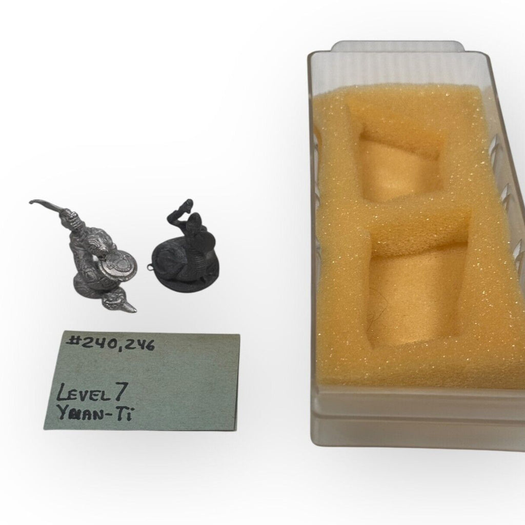 Vintage dungeons & dragons lead miniatures of the Yuan-Ti. This includes 1 Grenadier and 1 ral partha yuan-ti.