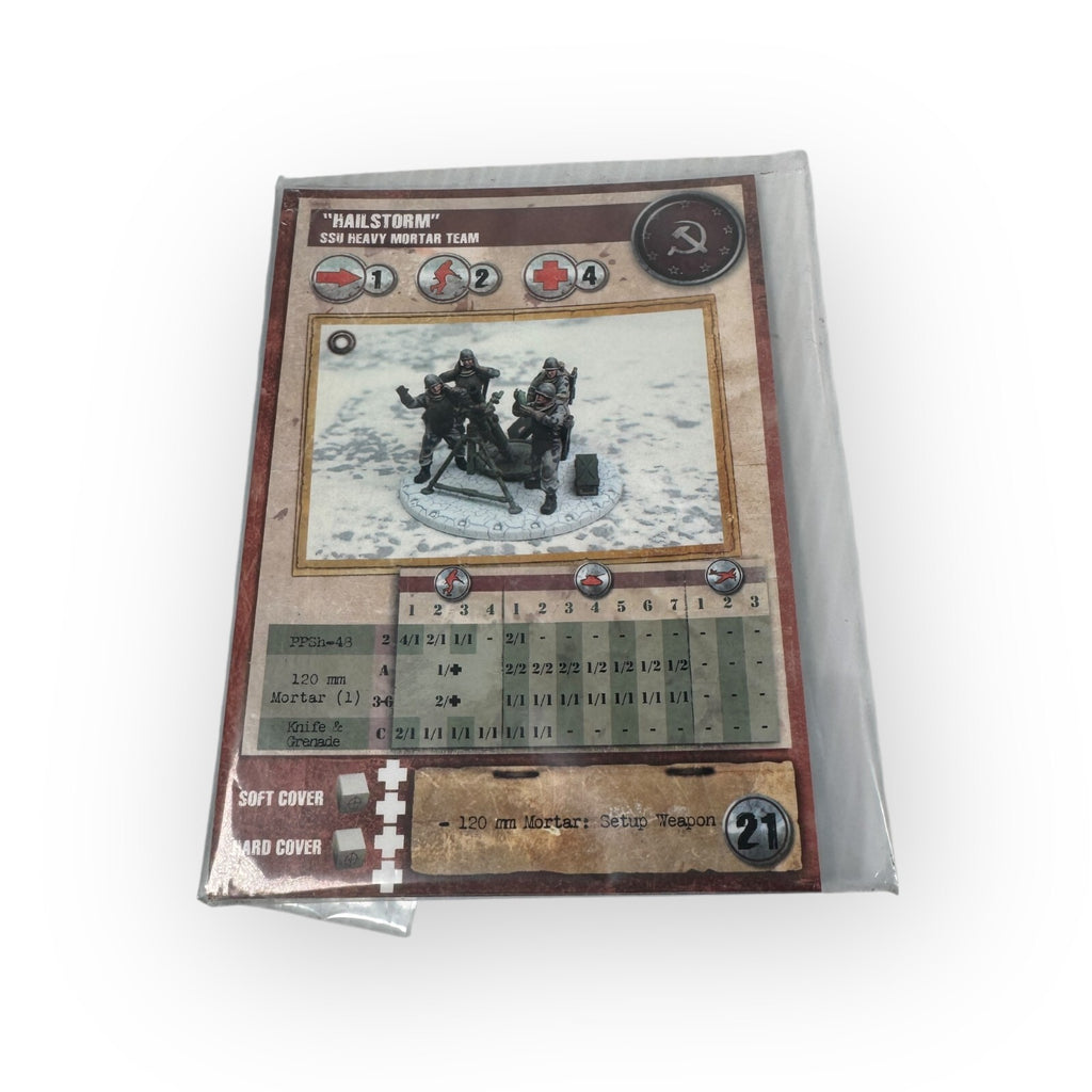 Experience the thrill of battle with the Dust Tactics SSU Heavy Weapons Teams Hailstorm / Red Lightning Set. It comes in the plastic insert with stat card. It does not include the original box. This product is in Used condition.