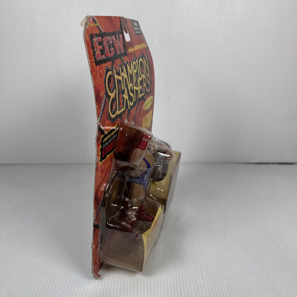 The ECW OSFTM Taz Champion Clashers Series 4 action figure is a vintage collectible from 2000, signed by Taz himself. This 1:12 scale plastic figure features Taz in his wrestling attire, making it a must-have for fans of Extreme Championship Wrestling. The original sealed packaging adds to its appeal for collectors of wrestling memorabilia, and the hard-signed autograph adds a unique personal touch to this officially licensed product. Perfect for any wrestling enthusiast looking to add a rare piece to their collection.