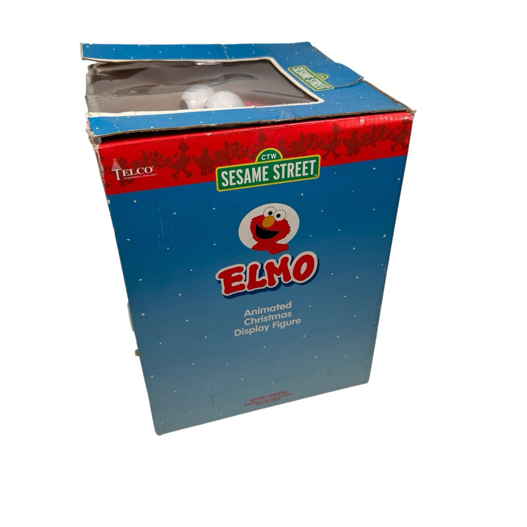 This is an Elmo Sesame Street animated Christmas display figure from 1998, manufactured by Telco. Standing at 11 inches tall, this collectible item is battery-operated and features the beloved character from the Sesame Street TV show. Made of plastic and fabric, this multicolored figure is a nostalgic piece for fans of the Sesame Street franchise, showcasing the iconic character in animated form. Perfect for collectors of animation merchandise, this Elmo figure is a charming addition to any display or holiday decor.