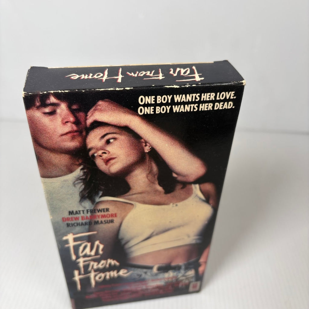 Immerse yourself in the chilling 1989 teen thriller "Far From Home" on VHS, featuring a young Drew Barrymore in a pivotal role. This suspenseful film, distributed by AVID Home Entertainment, tells the story of a vacation gone terribly wrong. When a rebellious teenager, Jory (Drew Barrymore), and her father are stranded in a remote trailer park, Jory finds herself entangled in a web of seduction and murder. As a psychopathic killer stalks the residents, Jory must fight for her life and uncover the terrifying truth behind the idyllic facade.