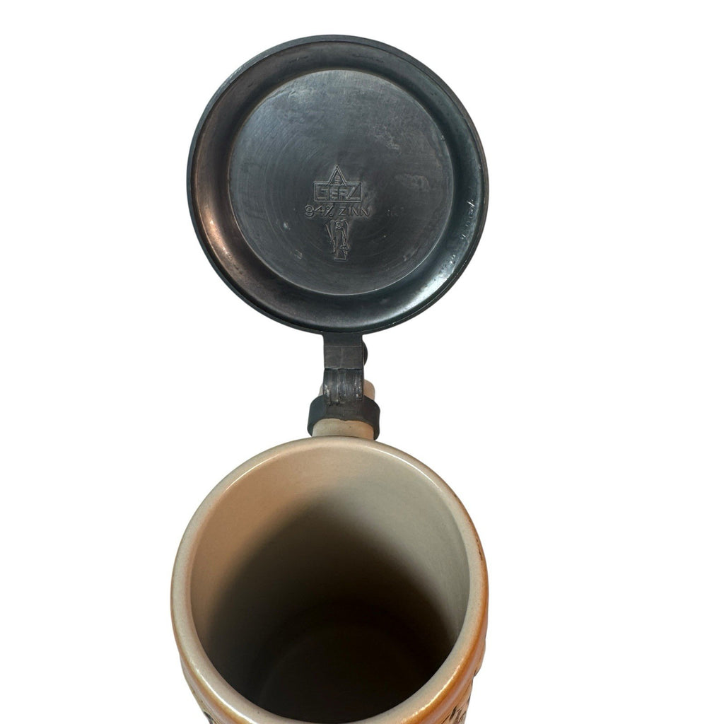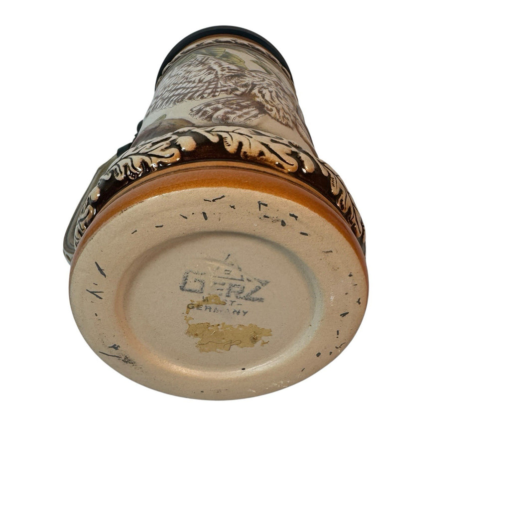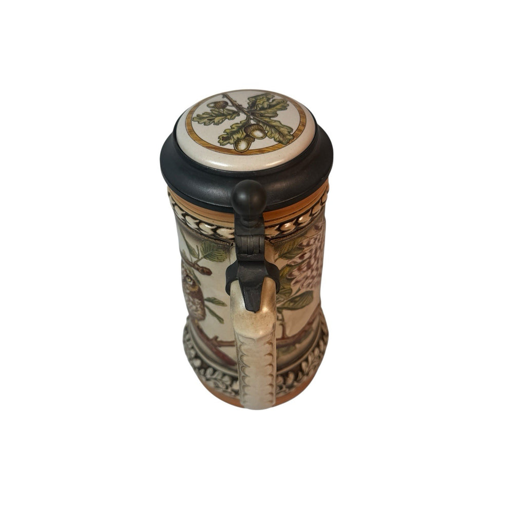 The Gerz West Germany Beer Stein with Owls is a collectible lidded stein made in Germany. Featuring intricate owl designs, this piece is a unique addition to any breweriana or beer enthusiast's collection. This beer stein showcases the craftsmanship and quality of German brewing culture. Perfect for display or for enjoying a traditional German beer in style, this Gerz beer stein is a must-have for collectors and beer aficionados alike.