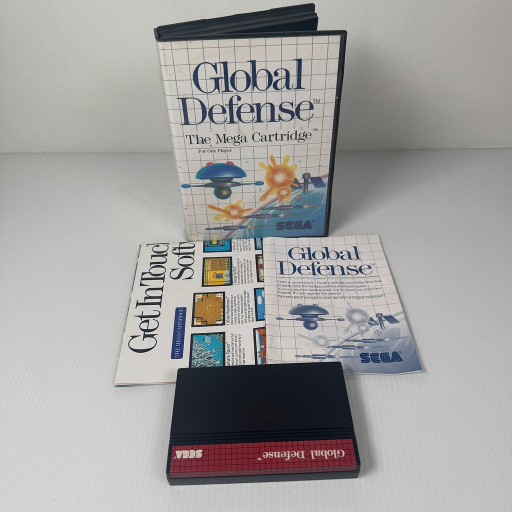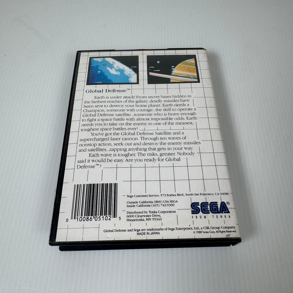 This listing includes the original Mega Cartridge, case, and manual, providing a complete retro gaming experience. Released in 1988 by Sega and distributed by Tonka Corporation, Global Defense is compatible with the Sega Master System platform. Fans of classic arcade-style shooters will enjoy the intense space battles and escalating challenges that make this game a memorable addition to any collection.This product is in Very Good condition.