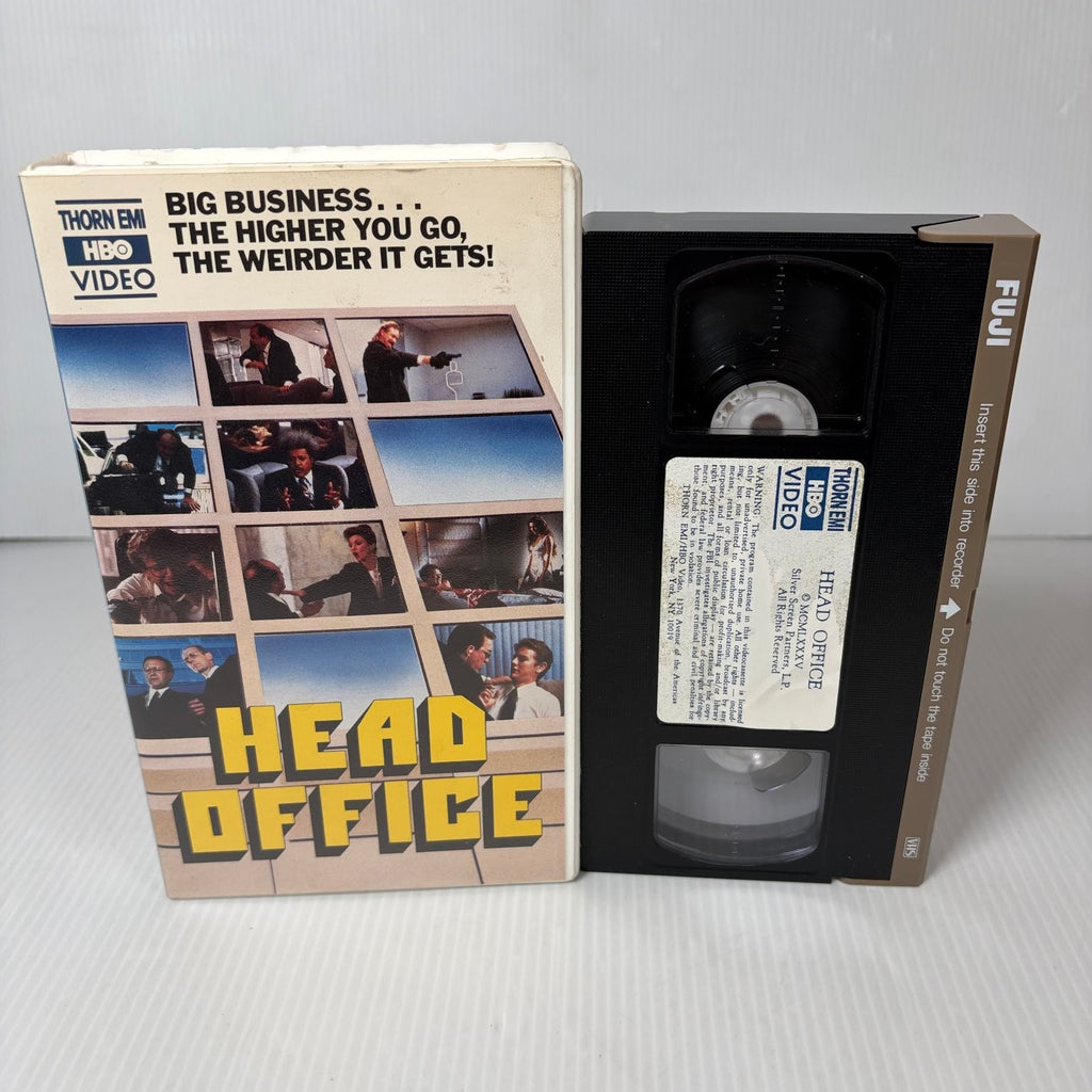 This original VHS release features an all-star cast including George Reinhold, Lori-Nan Engler, Eddie Albert, Richard Masur, and the comedic genius of Rick Moranis, Don Novello, and Danny DeVito. Experience the film's sharp wit and memorable performances in its classic analog format. A must-have for collectors of 80s comedies and fans of corporate satire, this VHS tape offers a nostalgic trip back to a time when big business was truly big. The film's engaging plot, combined with its talented ensemble, makes "Head Office" a timeless comedic gem.This product is in Very Good condition.