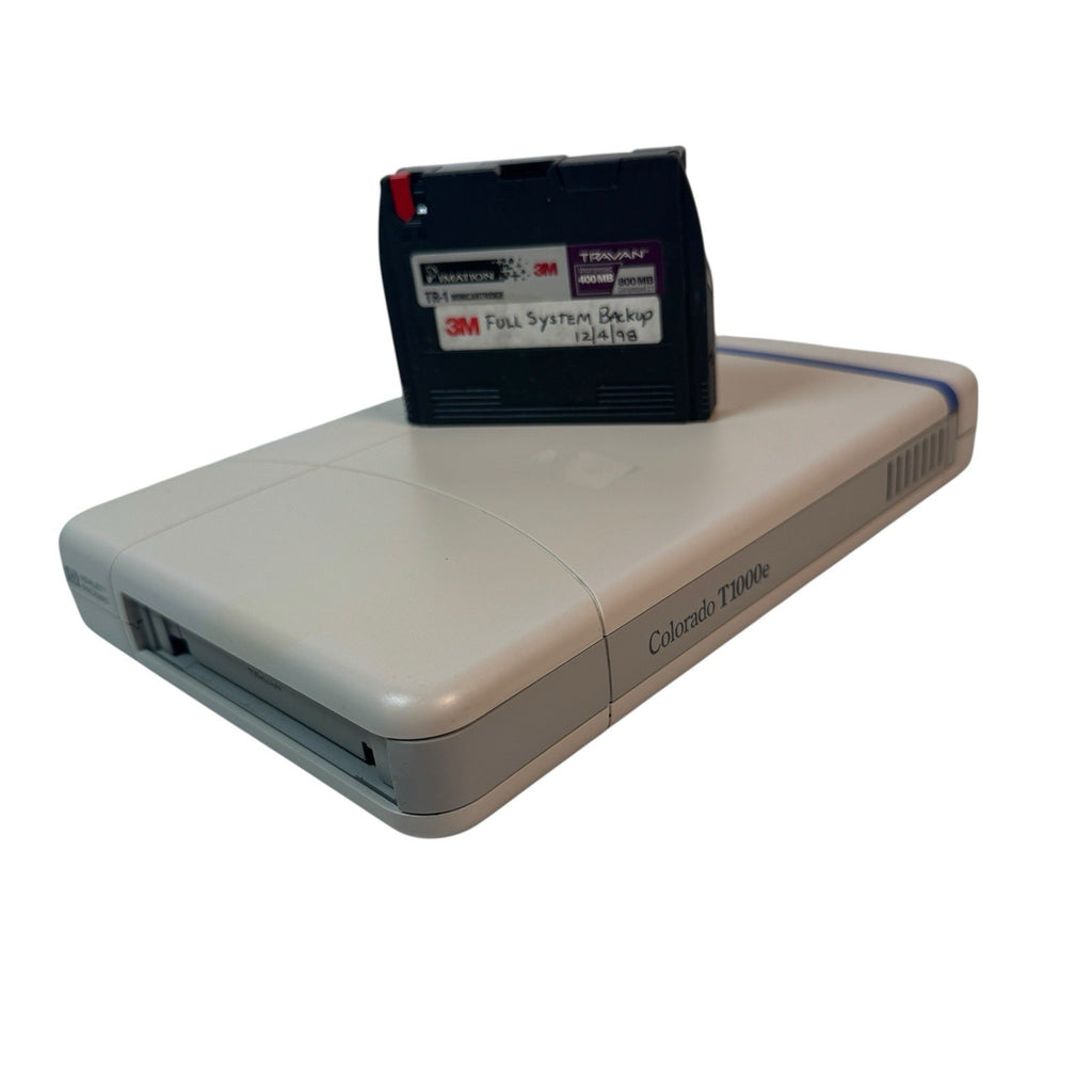 The Hewlett Packard HP Colorado T1000e Travan Tape Drive is an external tape drive specifically designed for use with PCs. It has a storage capacity of 800 MB and is compatible with Travan TR-1 Minicartridges for writable format. This unit, model T1000e, is ideal for storing data in a compact and efficient manner.