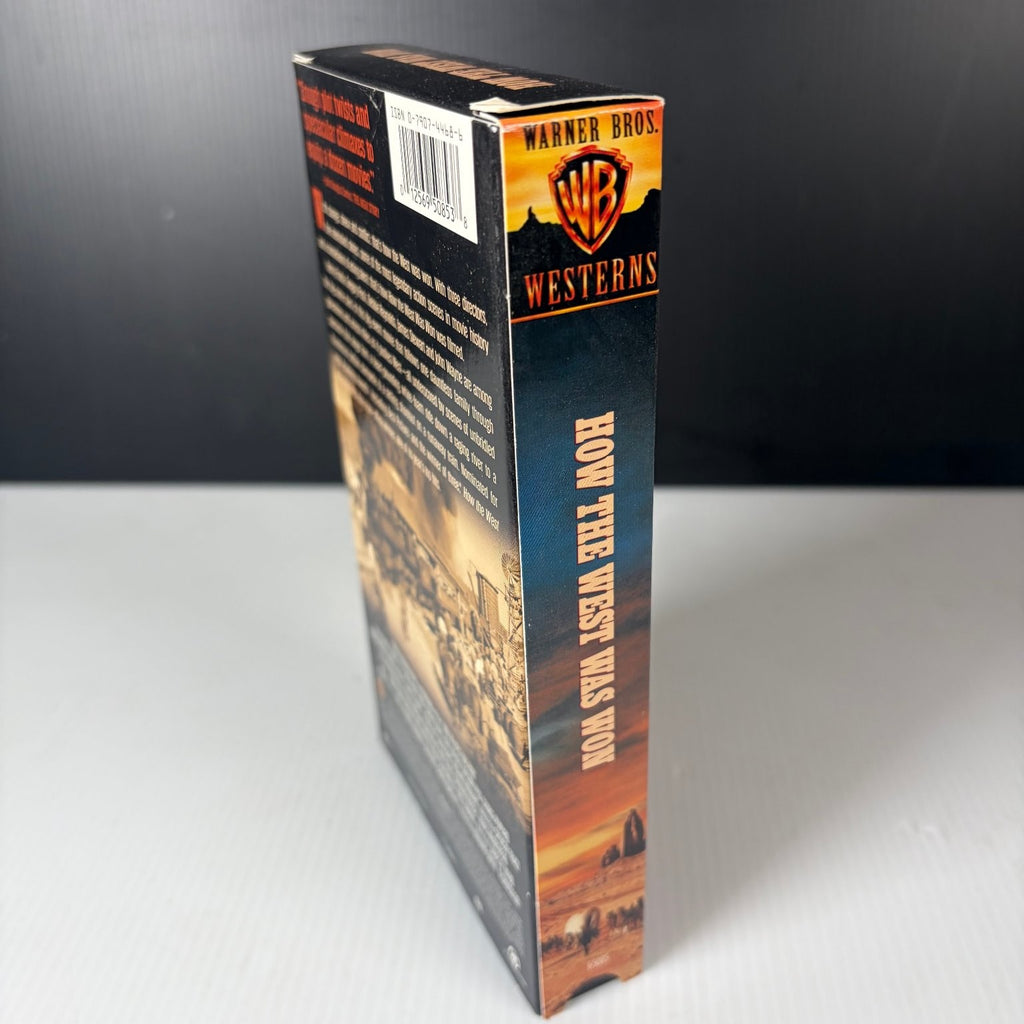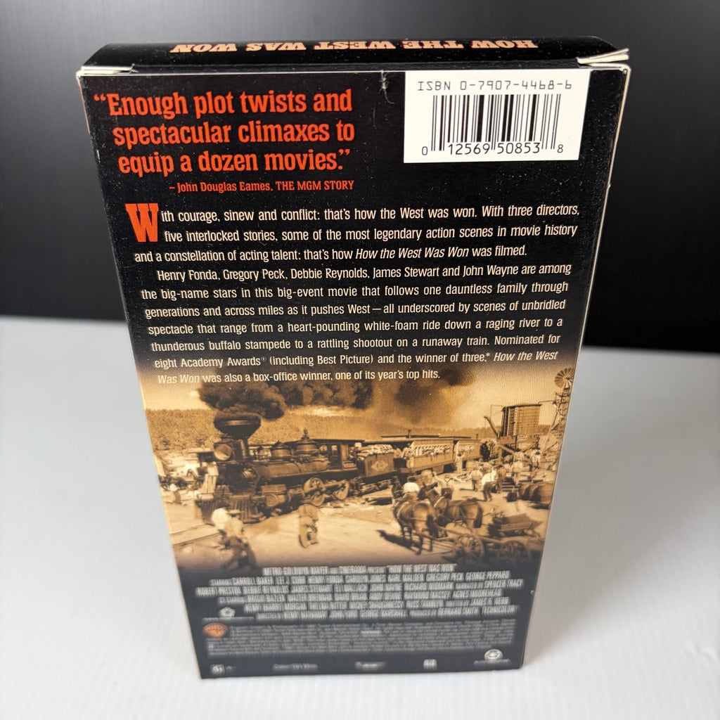 This Warner Bros. Westerns VHS edition presents the 1962 cinematic masterpiece in NTSC format, complete with authentic original packaging. The box highlights the film's notable accolades, including eight Academy Award nominations and three wins, solidifying its status as a top box-office hit. Collectors will appreciate the detailed artwork featuring key cast portraits and iconic Western imagery. A must-have for Western enthusiasts and classic film collectors alike.
