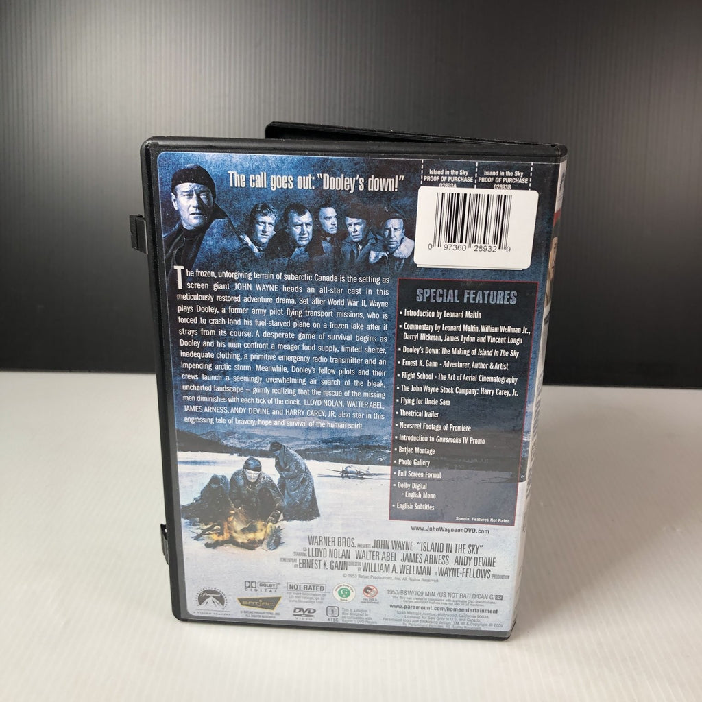 Island in the Sky is a gripping 1953 adventure drama starring the legendary John Wayne as Dooley, a former army pilot stranded in the harsh, frozen wilderness of subarctic Canada. This Special Collector's Edition DVD is part of The John Wayne Collection and features a restored and remastered full-screen presentation, preserving the classic black-and-white cinematography and intense storytelling.