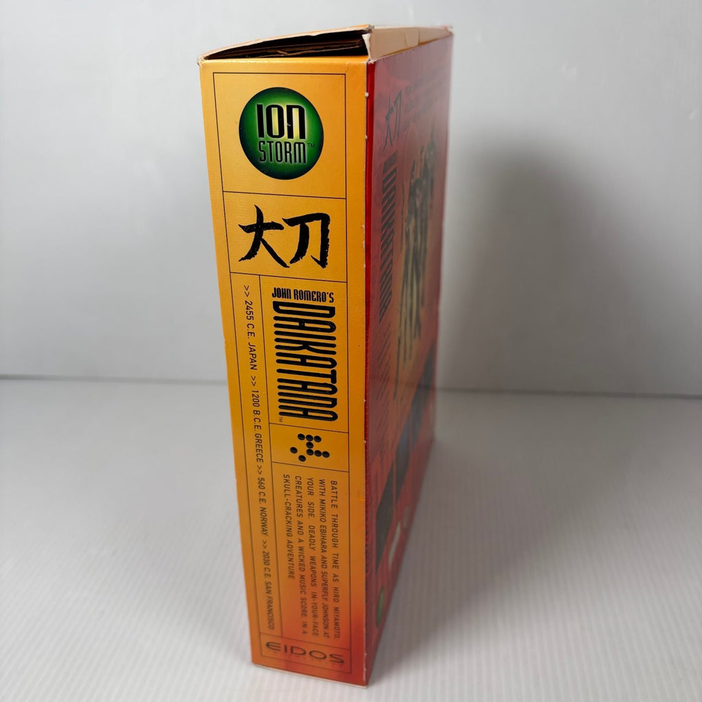 This complete PC CD-ROM big box edition includes the full game disc, a comprehensive game manual, an EIDOS 3D Demos disc featuring Thief II and other titles, an Eidos Interactive registration card, and an exclusive ign.com sticker. Experience intense single-player action with a deep storyline and engage in killer multiplayer capabilities for free network and internet play. With over 24 huge levels to explore and 18 original songs in MP3 format, Daikatana offers a truly expansive and unforgettable gaming adventure from the legendary co-creator of Wolfenstein 3D and Doom.This product is in Very Good condition.