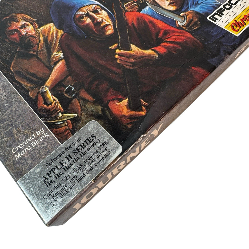 This is a complete 5.25" floppy disk version of the Apple II RPG game "Journey: The Quest Begins," released in 1988 by Infocom. This classic fantasy role-playing game is part of the popular Journey series, known for its engaging storyline and gameplay. The game is designed for the Apple II platform, providing an immersive experience for players looking to embark on a virtual adventure.