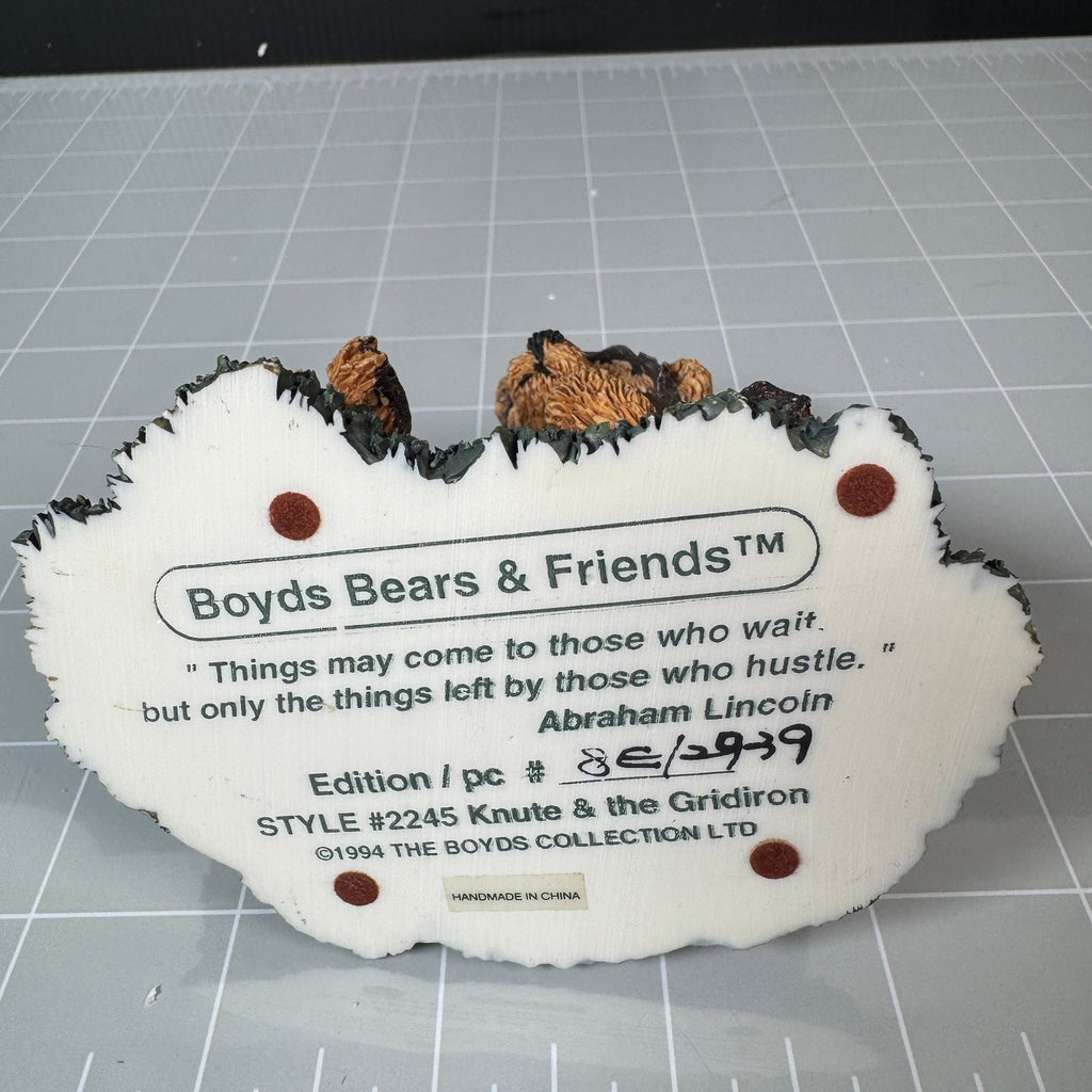 Keywords: Boyds Bears & Friends, Knute & the Gridiron, 1994, limited edition, collectible statue, vintage bear figurine, resin statue