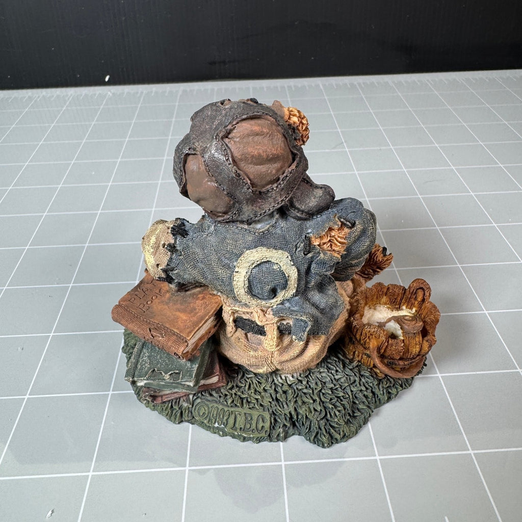 This collectible features Knute & the Gridiron from the Boyds Bears & Friends - The Bearstone Collection. Manufactured in 1994 by The Boyds Collection Ltd, this handmade resin statue is a limited edition piece, numbered 8E/2939. The figure depicts a detailed bear dressed in vintage football gear holding a football, sitting on a grassy base with books and a small bucket with a scoop.