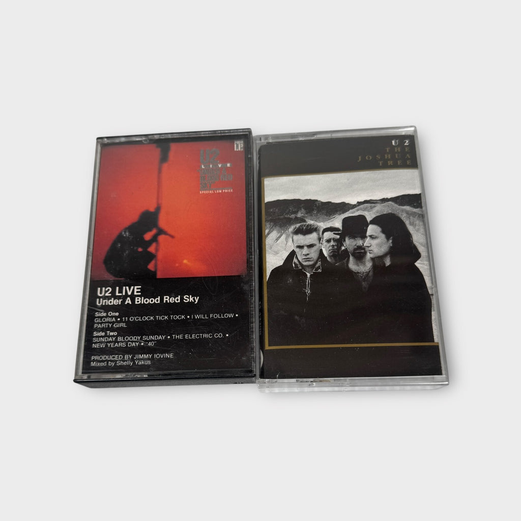 Immerse yourself in the iconic sounds of U2 with this lot of two cassette tapes, including the classic "Live Under a Blood Red Sky" and the acclaimed "The Joshua Tree." These tapes feature the band's signature blend of pop, alternative, and classic rock that has defined their legendary status.