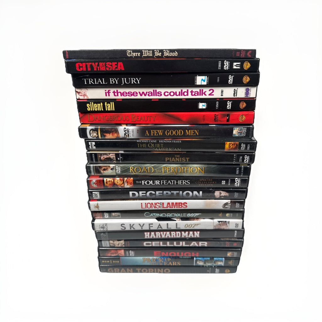 This product is a lot of 20 drama movies on DVD, including titles such as 007 Skyfall, Gran Torino, and There Will Be Blood. The DVDs are in the NTSC video format and some of them include features such as commentary, additional scenes, behind the scenes featurettes, and alternate endings. This bulk lot is perfect for fans of the drama genre who enjoy collecting movies on DVD.