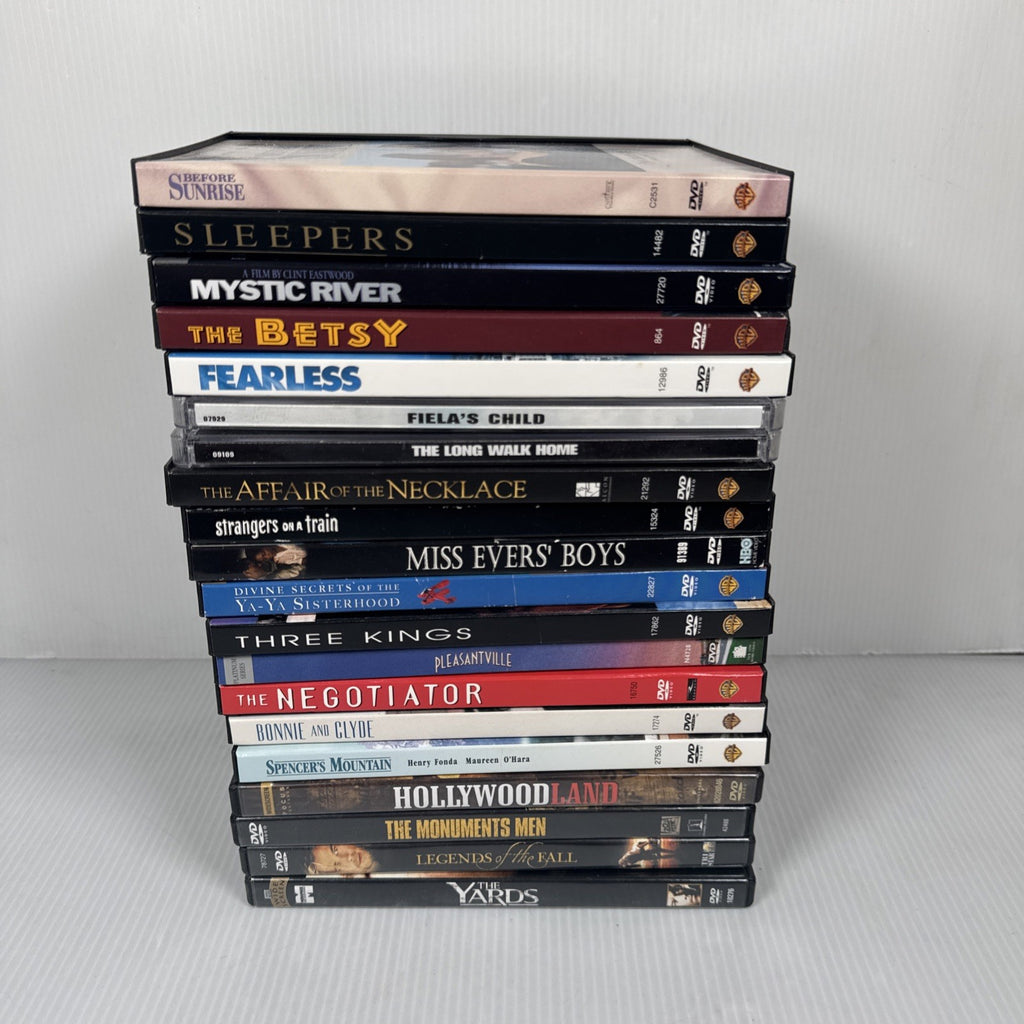 This lot of 20 drama movies on DVD includes a variety of popular titles such as Mystic River, Pleasantville, The Monuments Men, and Divine Secrets of the YA-YA Sisterhood.