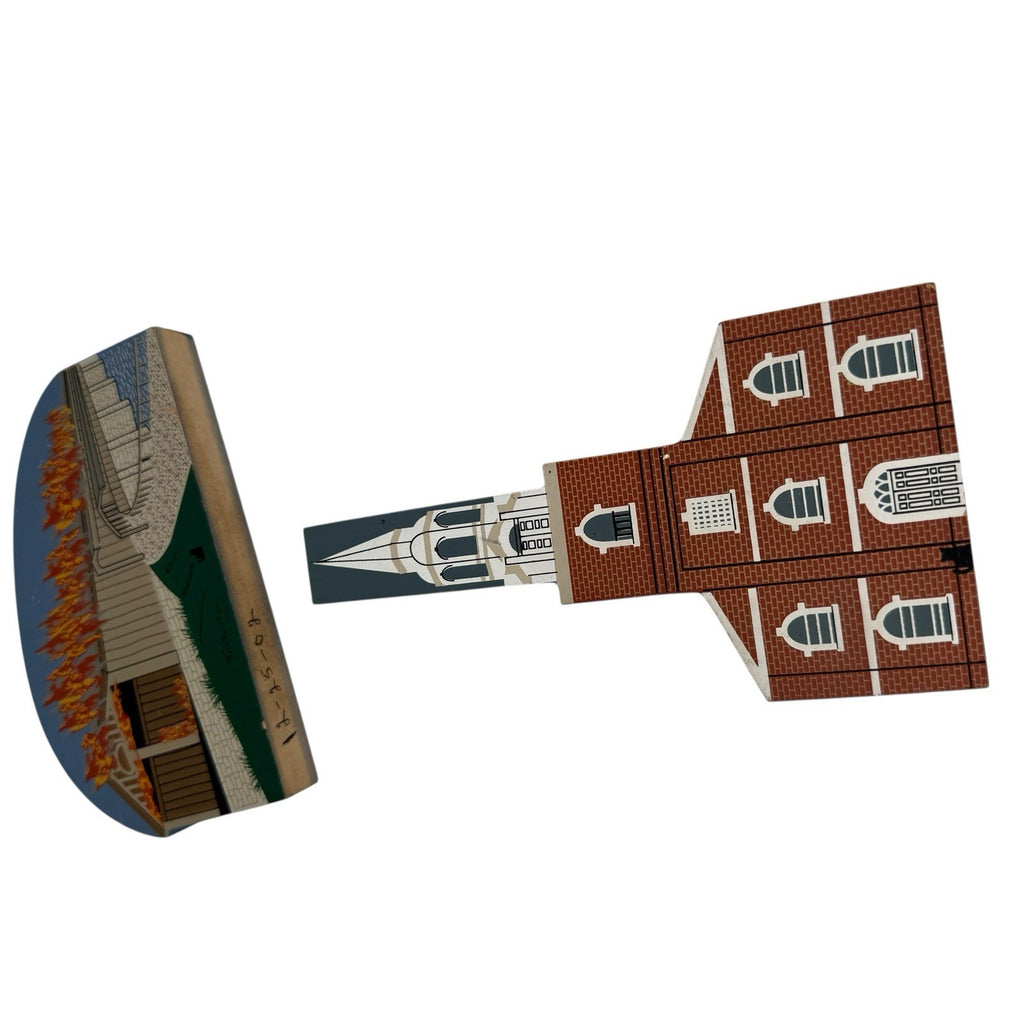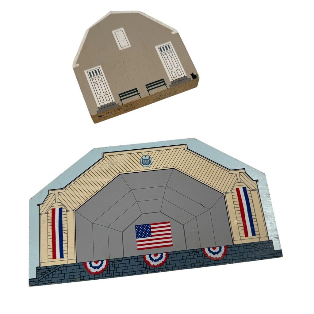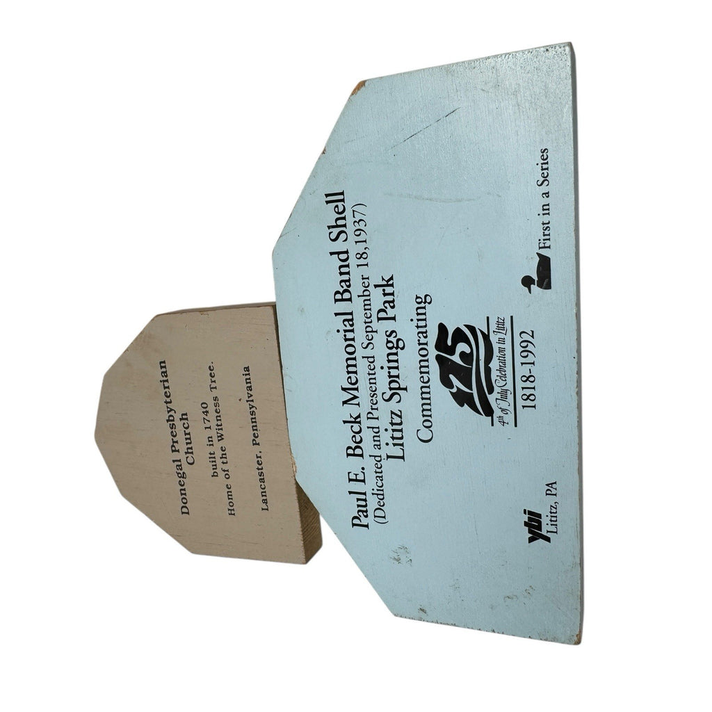 Add a touch of charm to your collection with this lot of four wooden houses, hailing from the nostalgic 90s and early 2000s. Crafted with care to show location surrounding Lancaster, PA each piece in this Classic Collection showcases the whimsy of Cat’s Meow & other designers, sure to delight enthusiasts and collectors alike.
