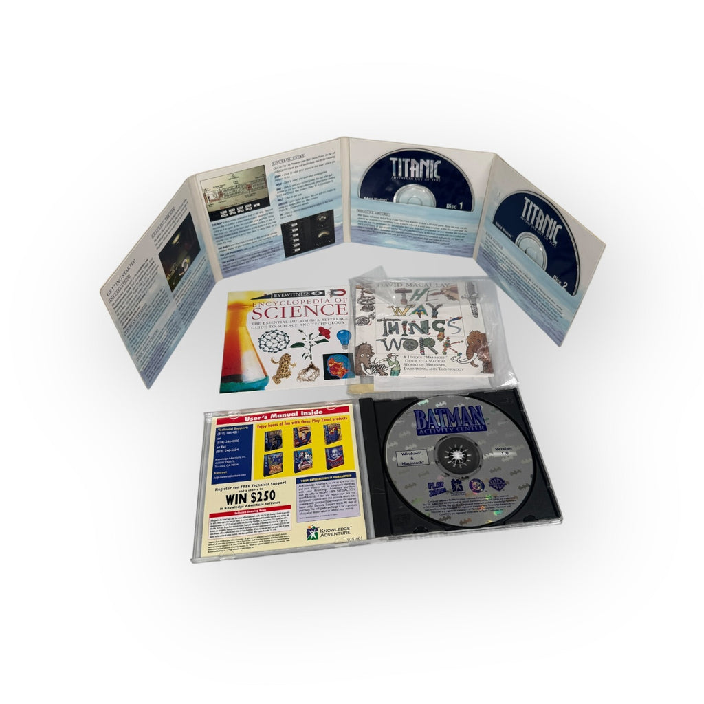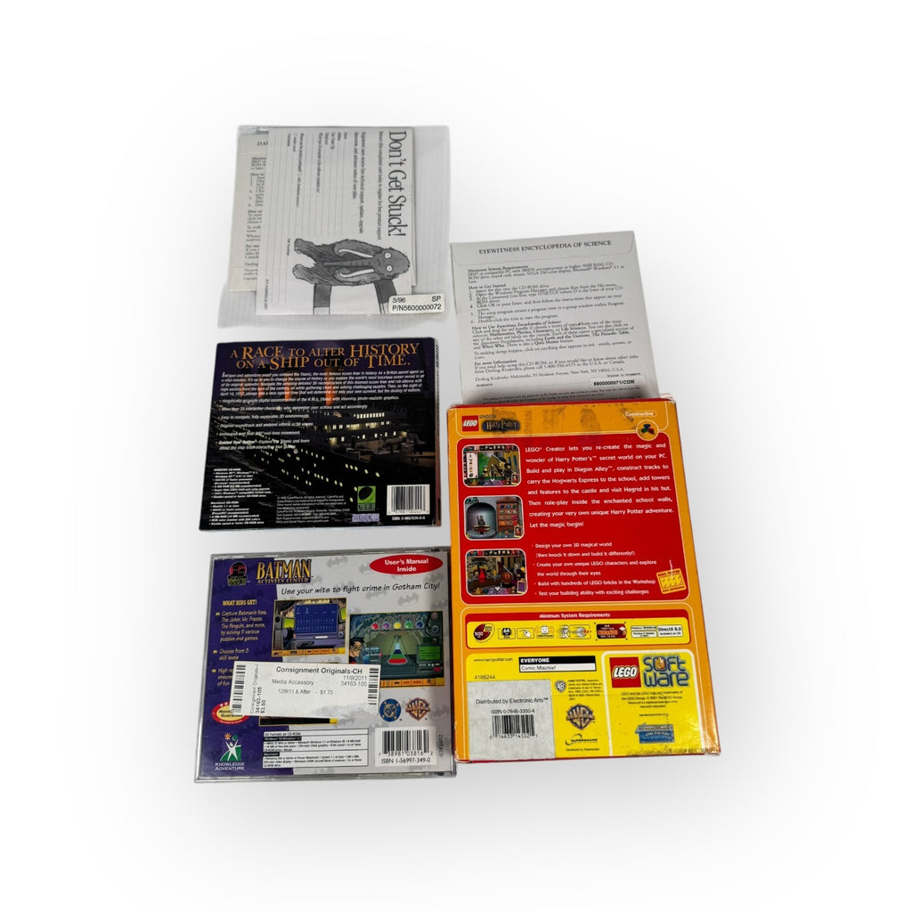 Immerse yourself in a nostalgic journey with this lot of 6 classic PC games, perfect for both kids and the whole family. Included in this collection are timeless titles such as Batman, Titanic, Lego Creator, and The Way Things Work, offering a variety of entertaining and educational experiences. See photos for all included titles.This product is in Good condition.