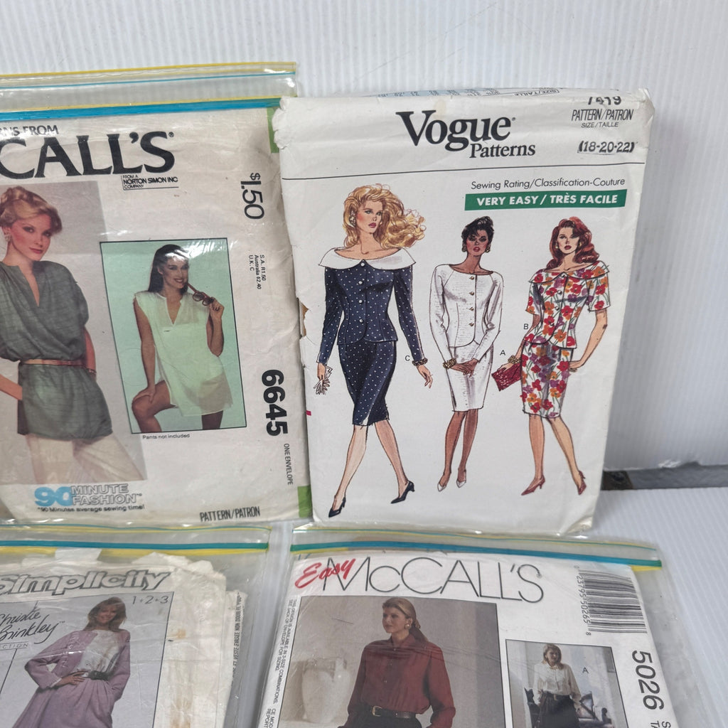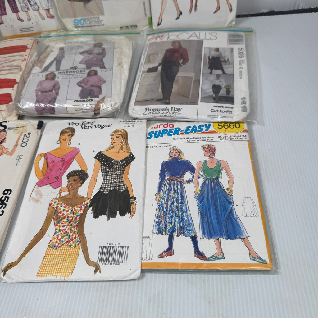 Some patterns show wear and tear on packaging but remain usable. Measurements vary by pattern