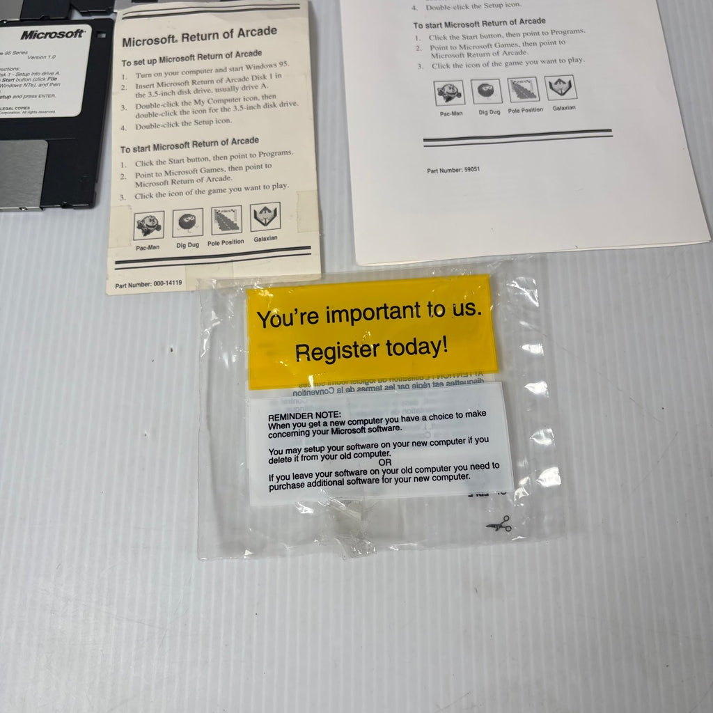 Relive the golden age of gaming with Microsoft Return of Arcade, a classic compilation designed specifically for the Windows 95 operating system. This collection brings four of the most iconic coin-op hits directly to your PC with pixel-perfect accuracy: Pac-Man, Dig-Dug, Galaxian, and Pole Position. Whether you are chomping ghosts, burrowing through the earth, or racing for the checkered flag, these timeless titles offer the same pulse-pounding action that defined the arcade era.