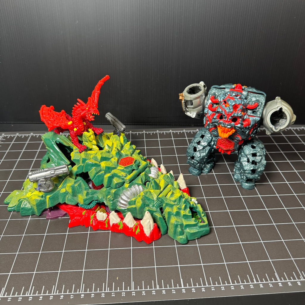 Both playsets are incomplete. They come as shown. The Dragon Island plastic dragon is damaged with a piece of its tail missing. The battery compartment has corrosion inside. It is untested.