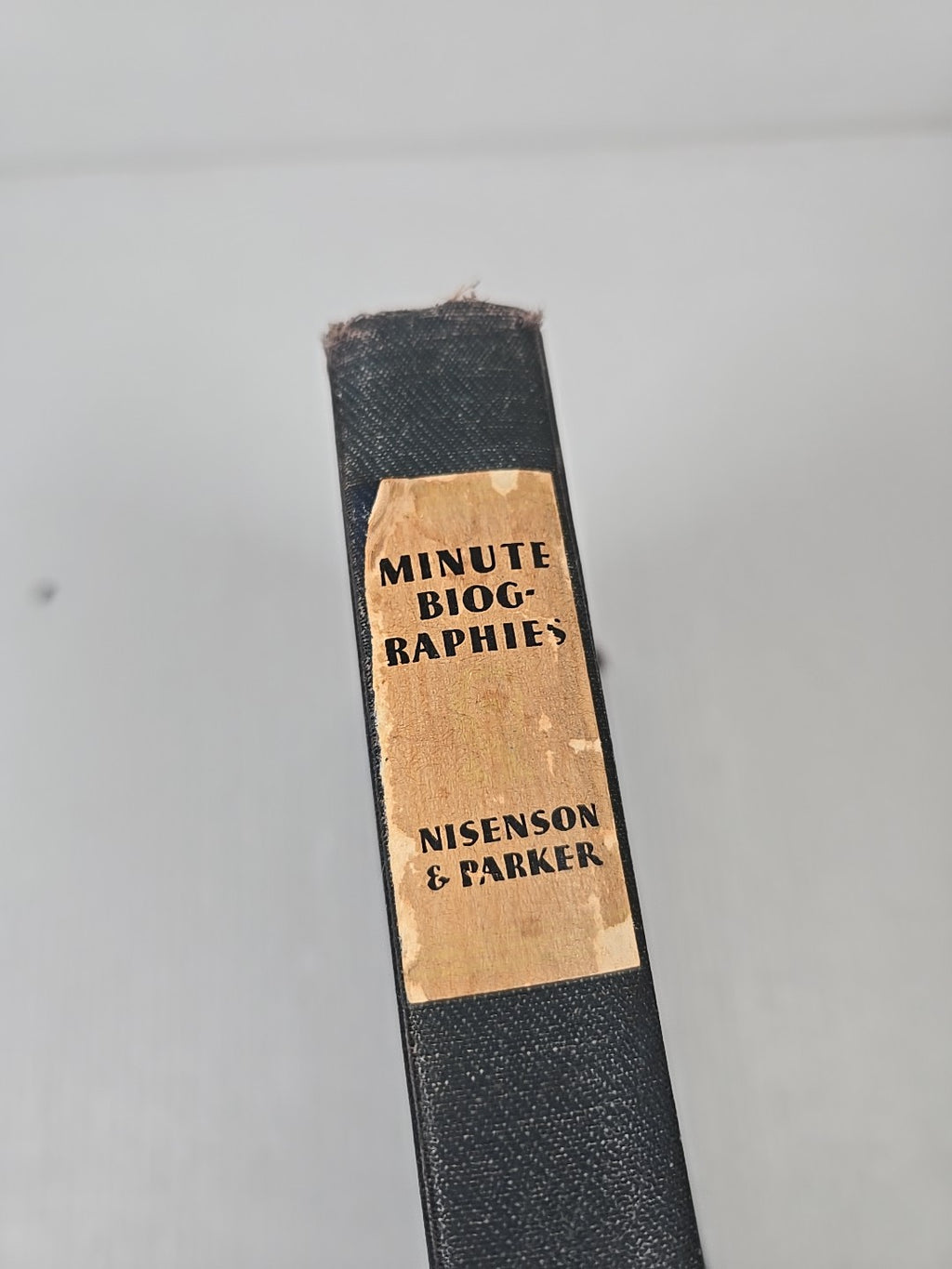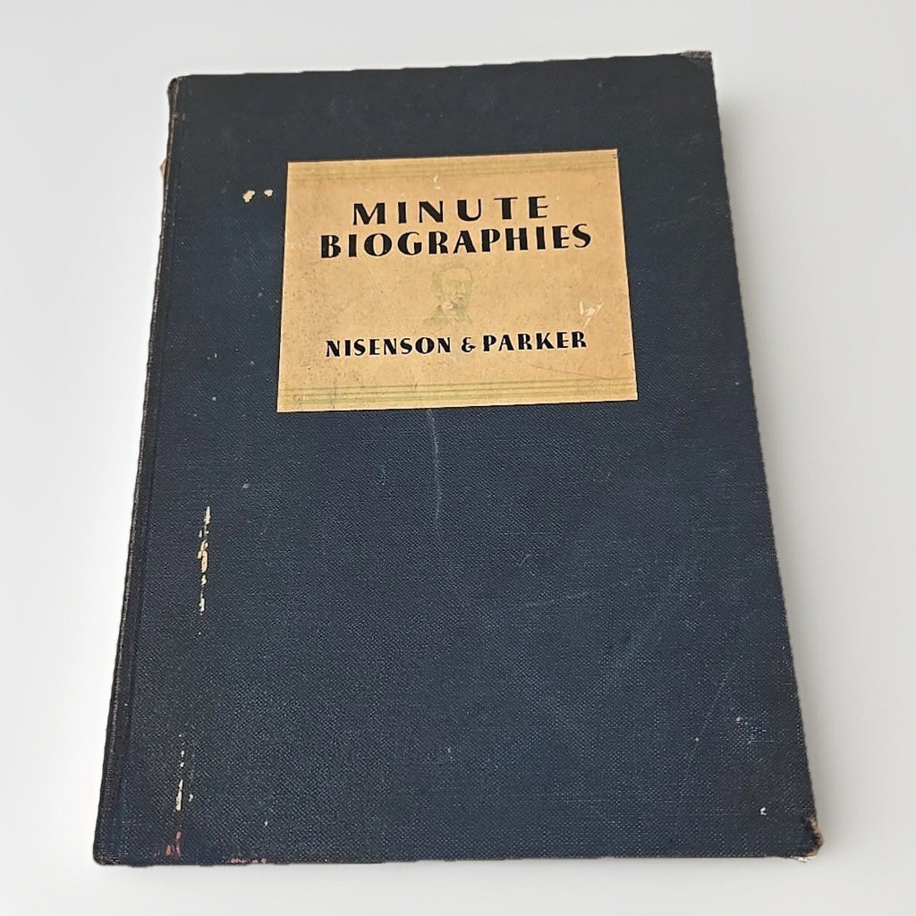 This is a vintage nonfiction book titled "Minute Biographies" by Parker, published in 1931 by Grossly & Dunlap in the United States. The book features illustrations and belongs to the 1930s era. It is a hardcover book in English.