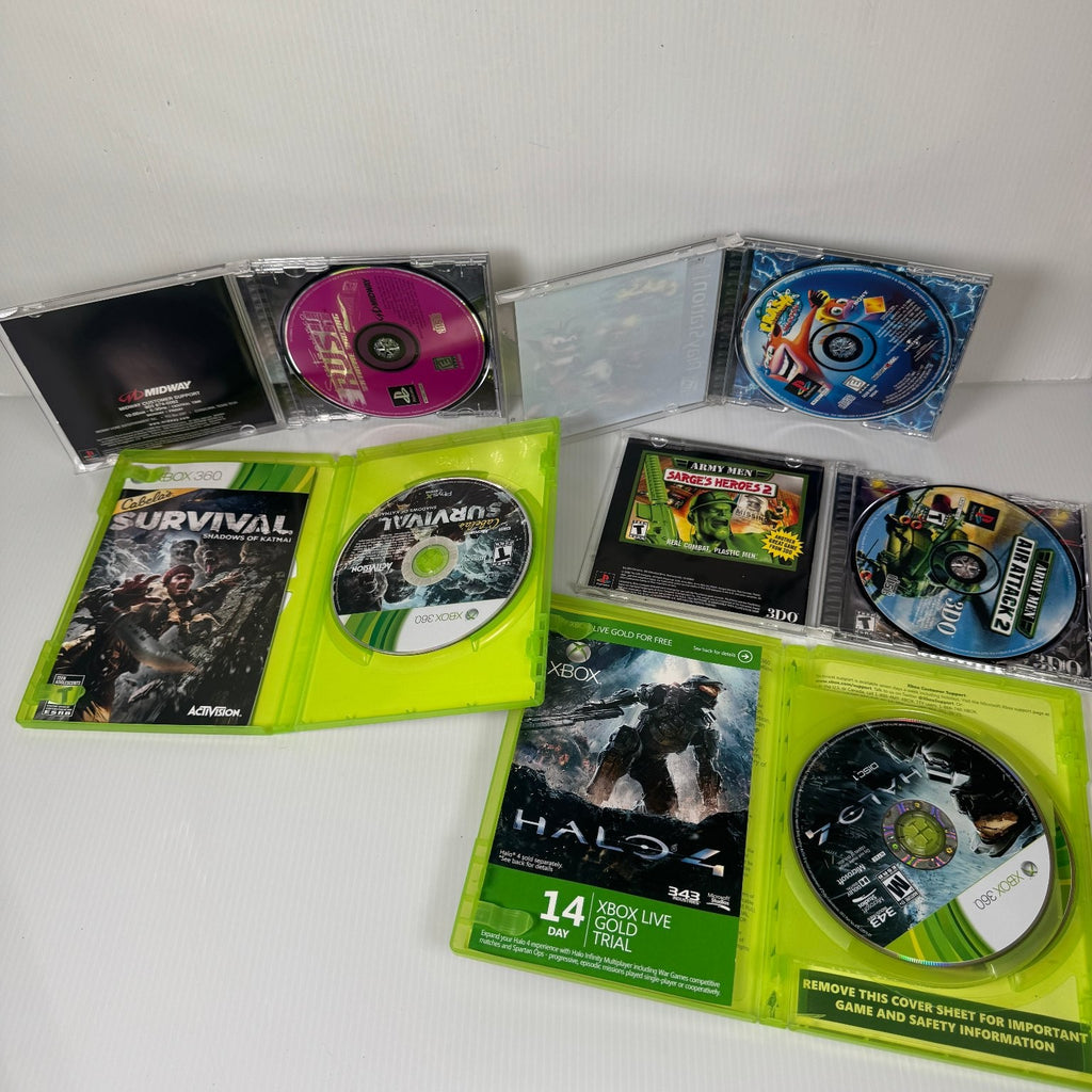 All disc-based games are in good condition with good condition disks. The Crash Bandicoot 3 has the lenticular cover, but does not have the manual.This product is in Very Good condition.