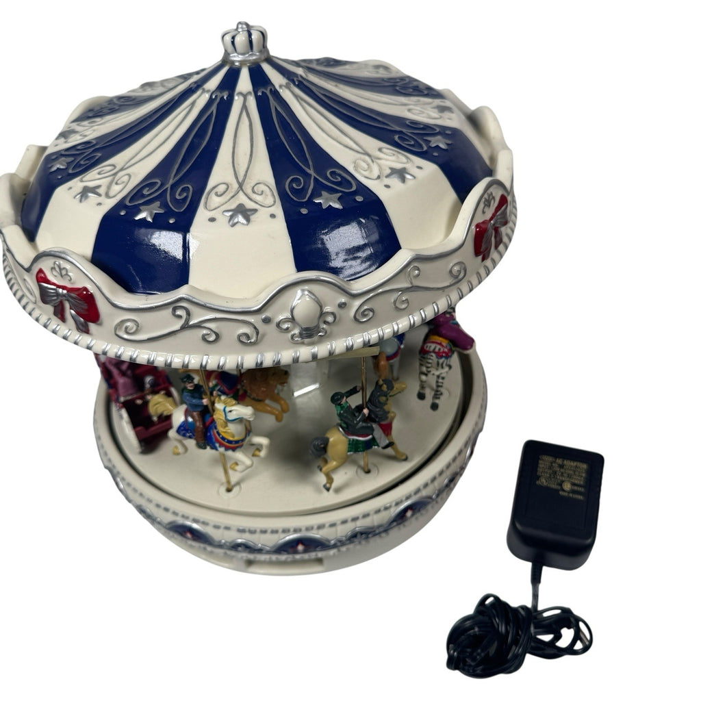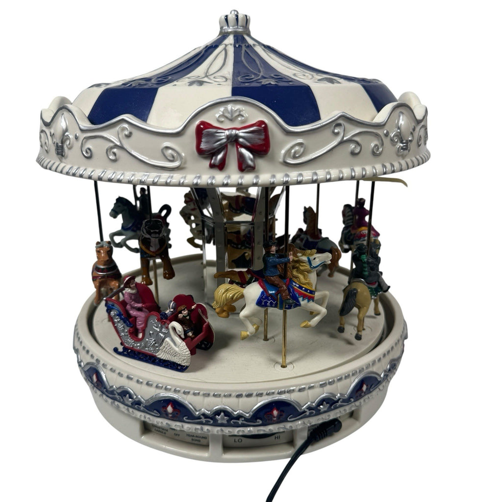 The Mr. Christmas Porcelain Merry-Go-Round Carousel is a festive and nostalgic addition to any holiday decor collection. Featuring 30 Christmas songs, this carousel plays a variety of cheerful tunes to spread holiday cheer. Made with mixed materials in a multicolor design, this 1992 vintage piece from Mr. Christmas is sure to bring joy and nostalgia to your Christmas celebrations. Perfect for collectors or those looking to add a touch of retro charm to their holiday traditions, this merry-go-round carousel is a tested and working piece that will delight both children and adults alike.
