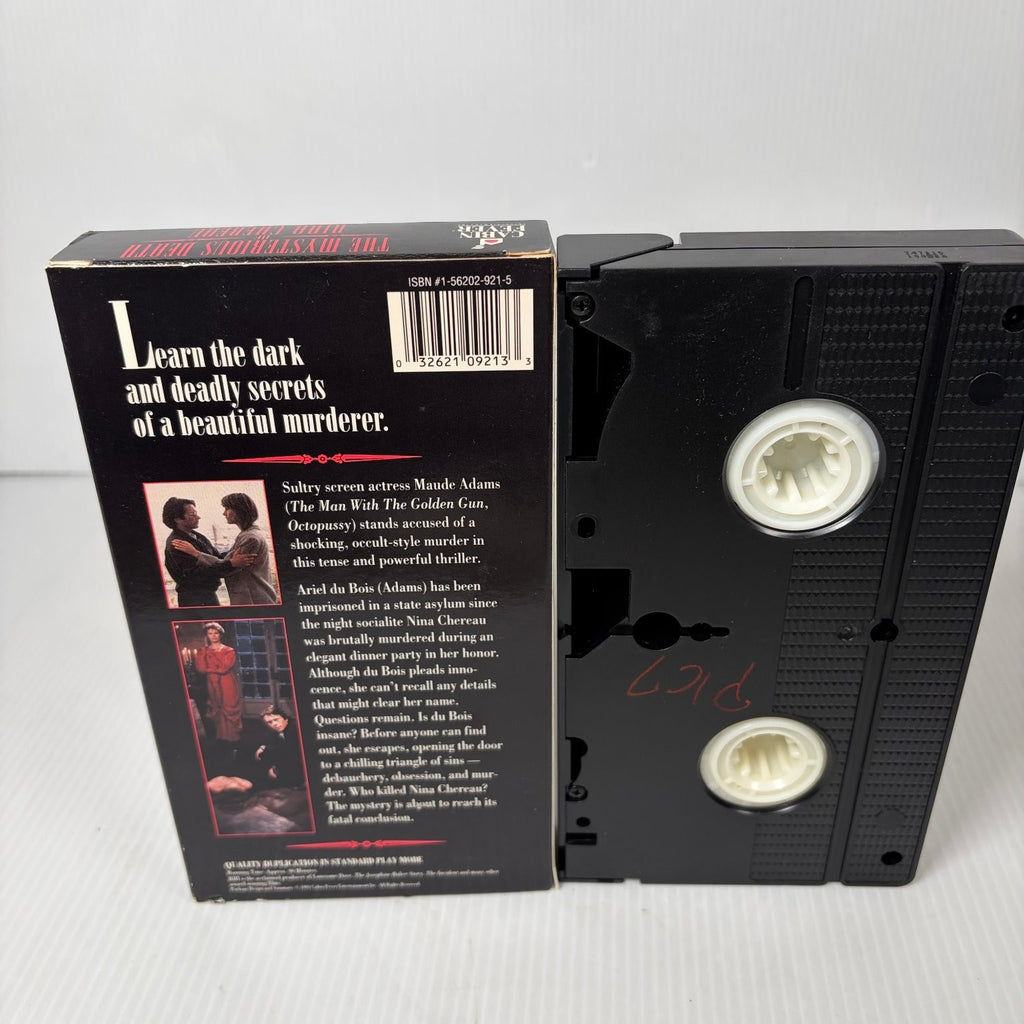 Immerse yourself in the chilling world of "The Mysterious Death of Nina Chereau," a captivating thriller from 1990, presented on its original VHS release by Cabin Fever Entertainment. Starring the iconic Maude Adams, known for her roles in James Bond films like "The Man With The Golden Gun" and "Octopussy," this film plunges into a shocking, occult-style murder mystery. Adams portrays a sultry screen actress accused of a heinous crime, making this a must-see for fans of suspense and classic cinematic drama.